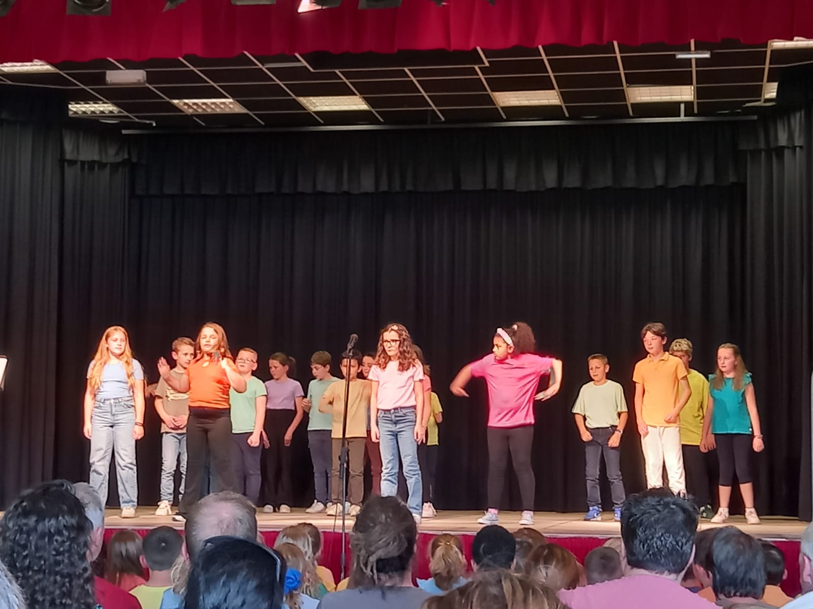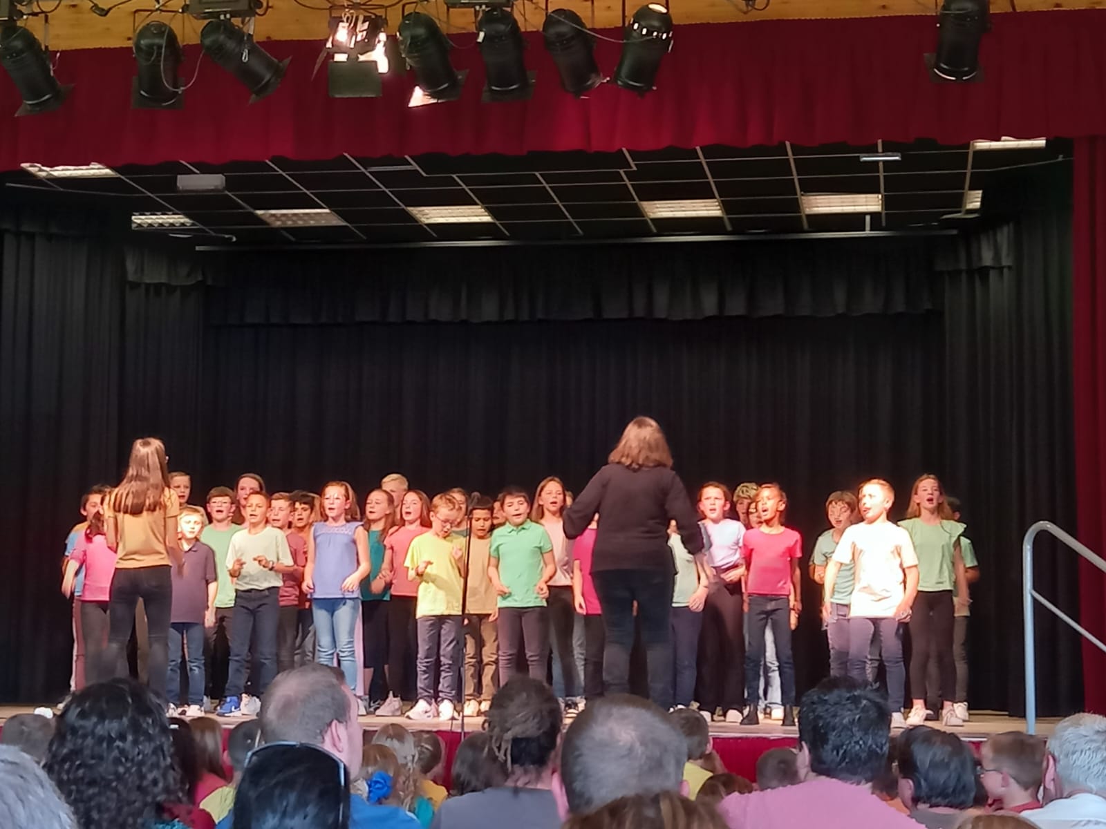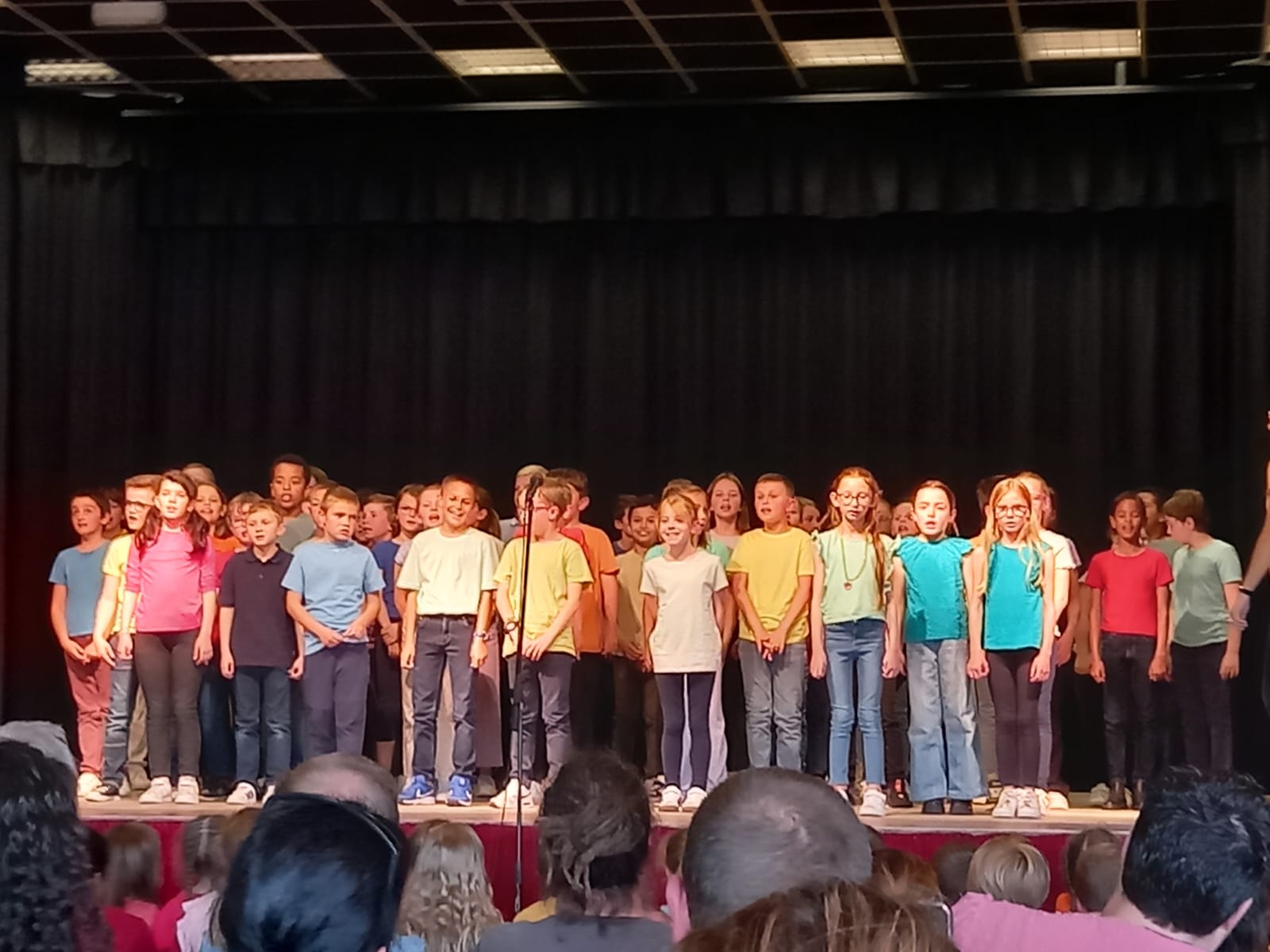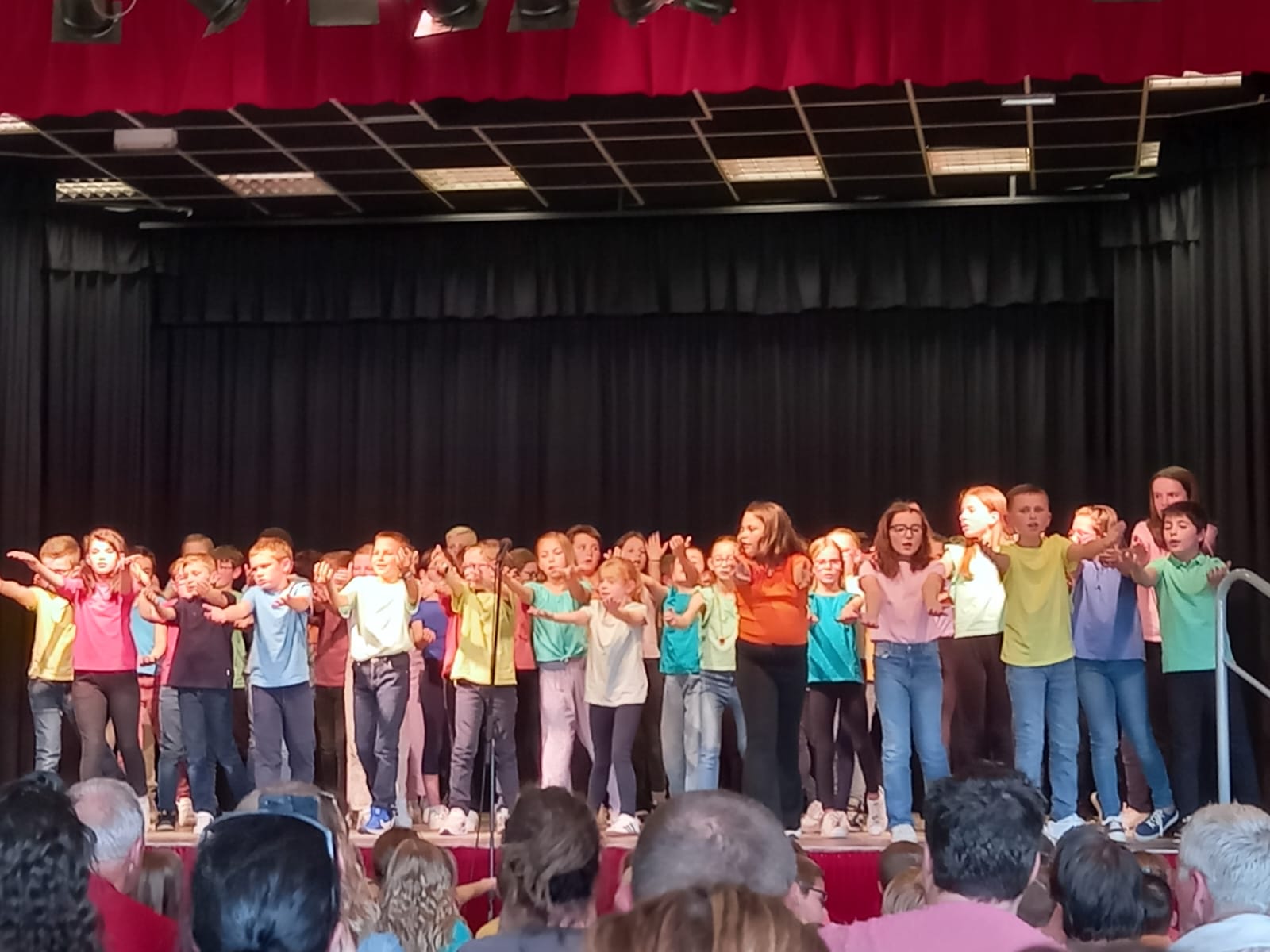 C’est dans la salle des fêtes André Désaubry, complètement remplie, que les élèves du groupe scolaire ont pu présenter à leur famille, le travail effectué toute l’année ce jeudi 6 juin. Avec leurs enseignantes et Mathilde, l’intervenante en chorale du conservatoire, ils ont chanté et dansé sur le thème principal du sport en cette année de jeux olympiques. Quel bonheur pour tous, petits et grands, de partager ces moments !