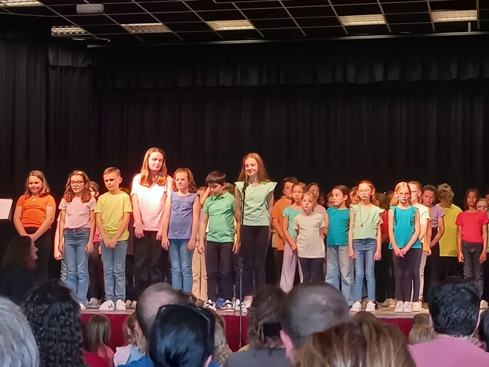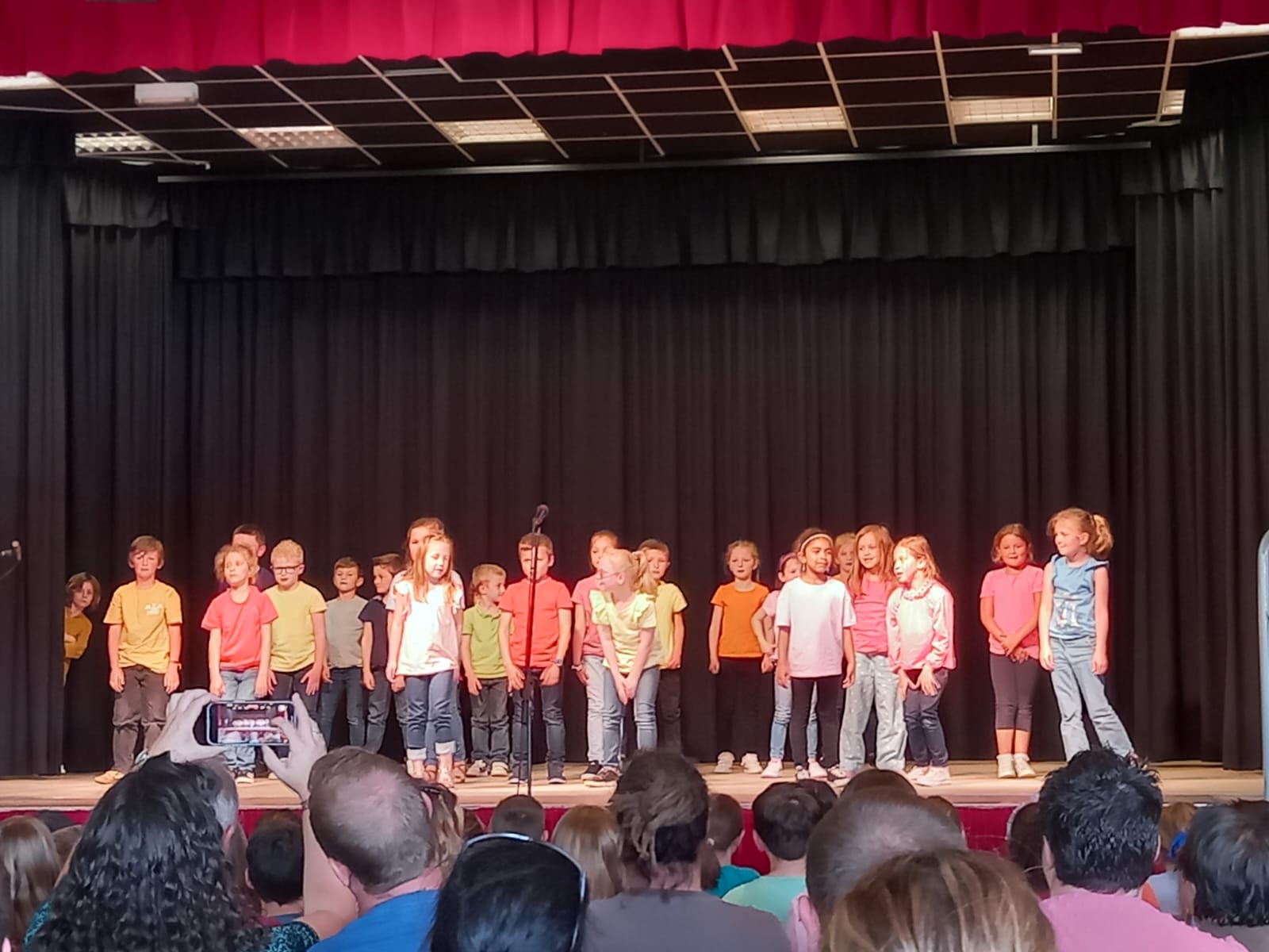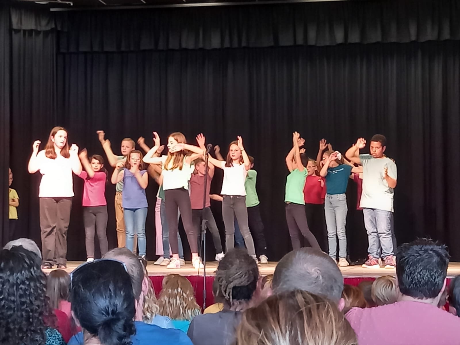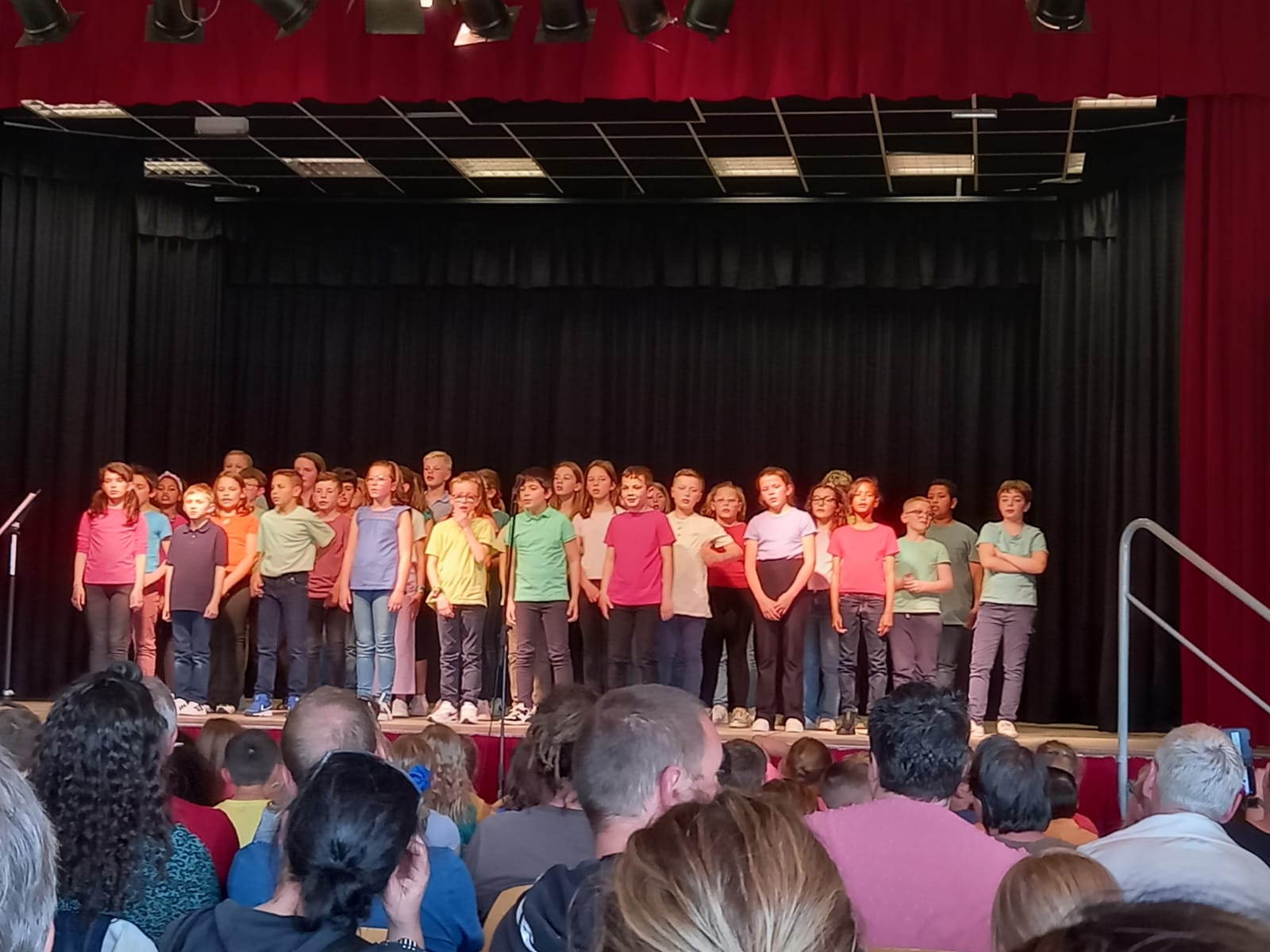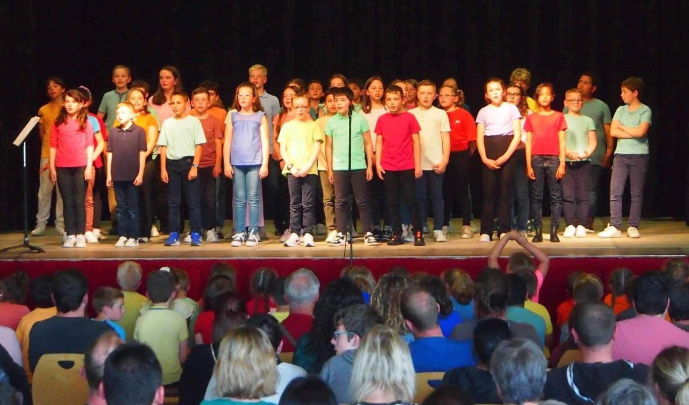 C’est dans la salle des fêtes André Désaubry, complètement remplie, que les élèves du groupe scolaire ont pu présenter à leur famille, le travail effectué toute l’année ce jeudi 6 juin. Avec leurs enseignantes et Mathilde, l’intervenante en chorale du conservatoire, ils ont chanté et dansé sur le thème principal du sport en cette année de jeux olympiques. Quel bonheur pour tous, petits et grands, de partager ces moments !