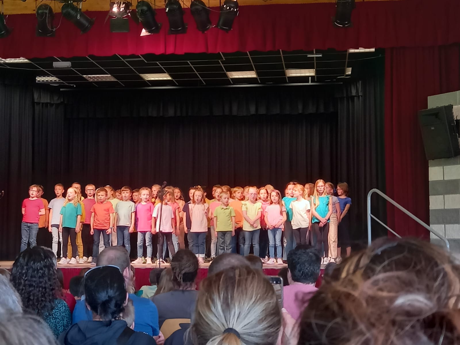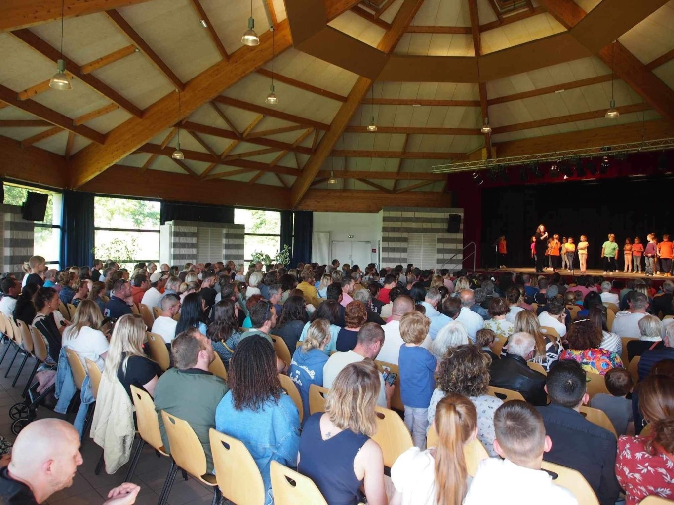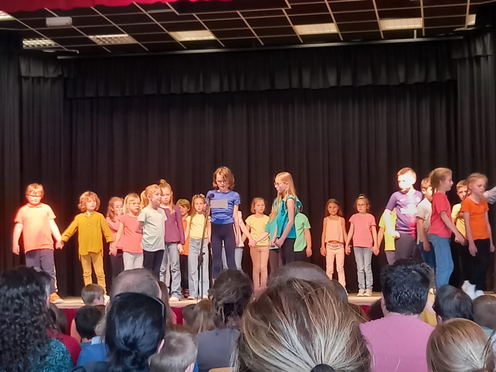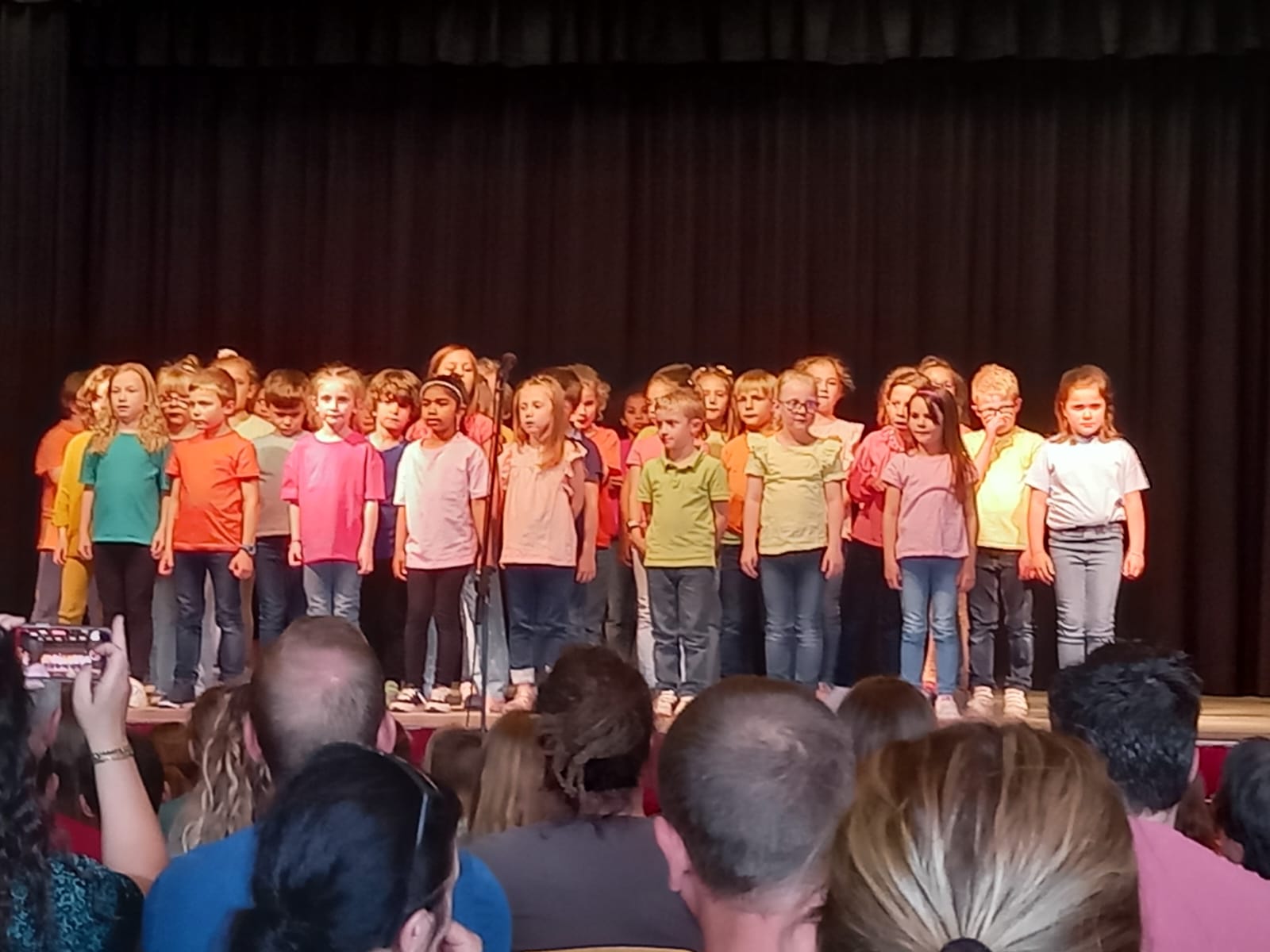C’est dans la salle des fêtes André Désaubry, complètement remplie, que les élèves du groupe scolaire ont pu présenter à leur famille, le travail effectué toute l’année ce jeudi 6 juin. Avec leurs enseignantes et Mathilde, l’intervenante en chorale du conservatoire, ils ont chanté et dansé sur le thème principal du sport en cette année de jeux olympiques. Quel bonheur pour tous, petits et grands, de partager ces moments !