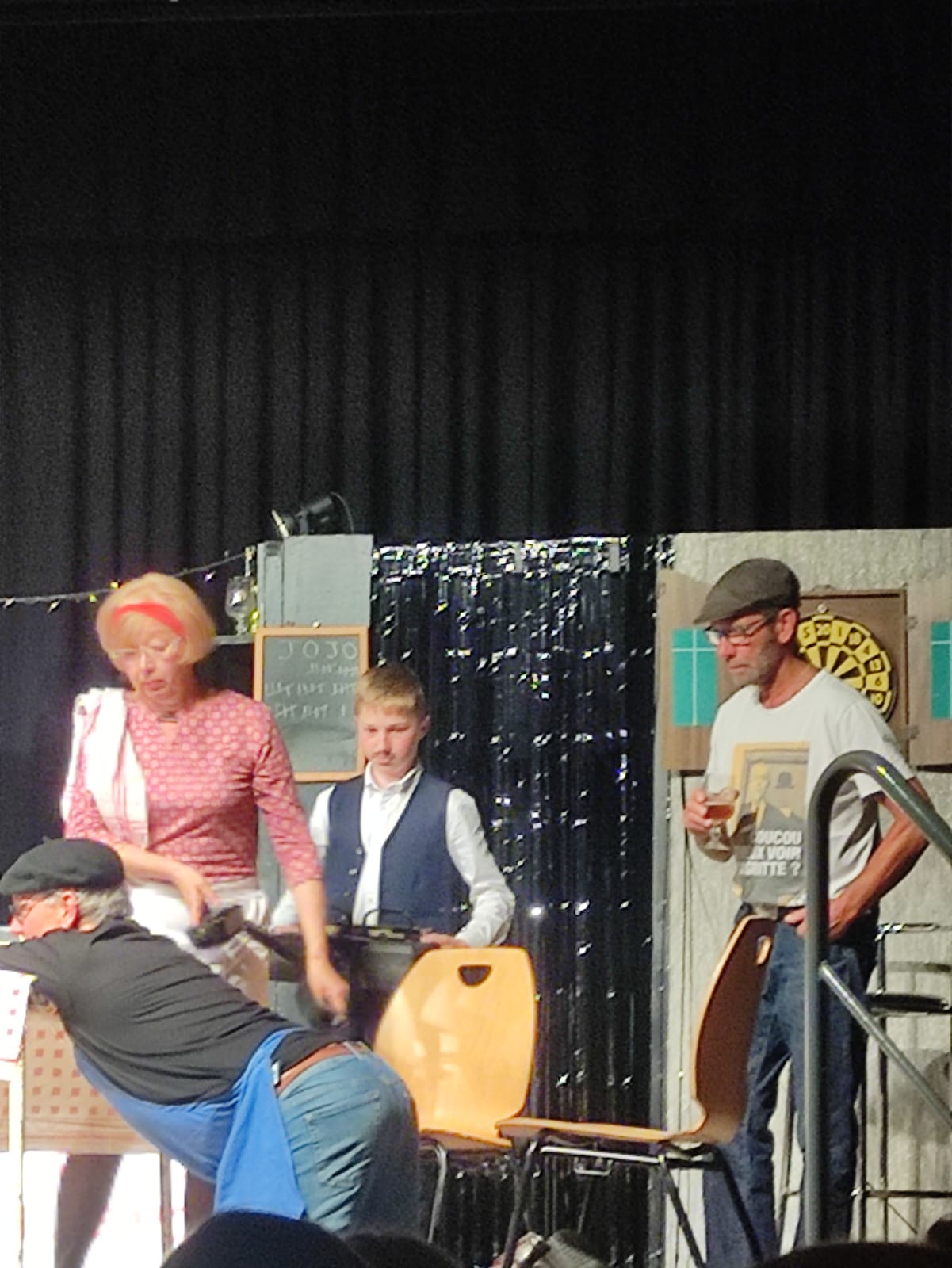 Après 2 années d’absence, la troupe des 18 pattes a donné rendez-vous à son public ce vendredi 13 mai. Près de 200 personnes se sont retrouvées à la salle André Désaubry pour venir voir la dernière création de Bruno Scrève. Pendant près d’une heure trente, le public a pu rire des péripéties de Louis et Germaine, les propriétaires d’un café, qui vont devoir affronter un contrôle fiscal, essayer de marier leur fille aînée en utilisant les services d’une agence matrimoniale …