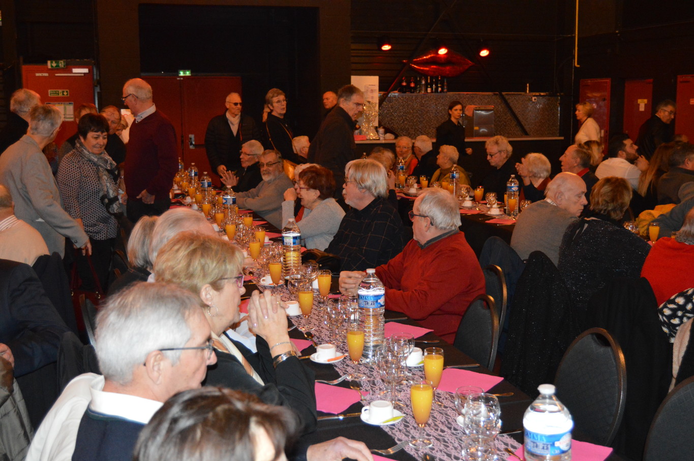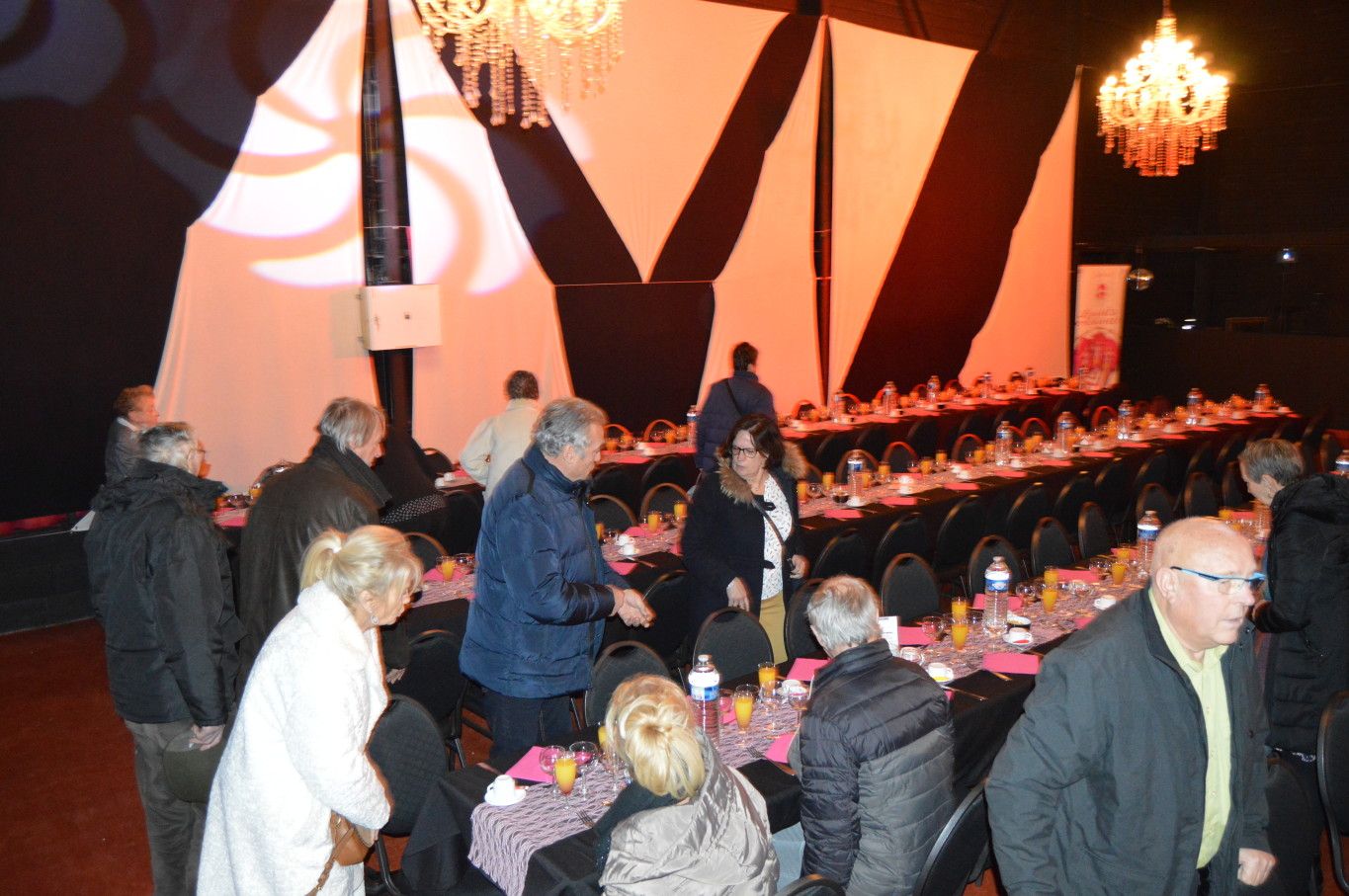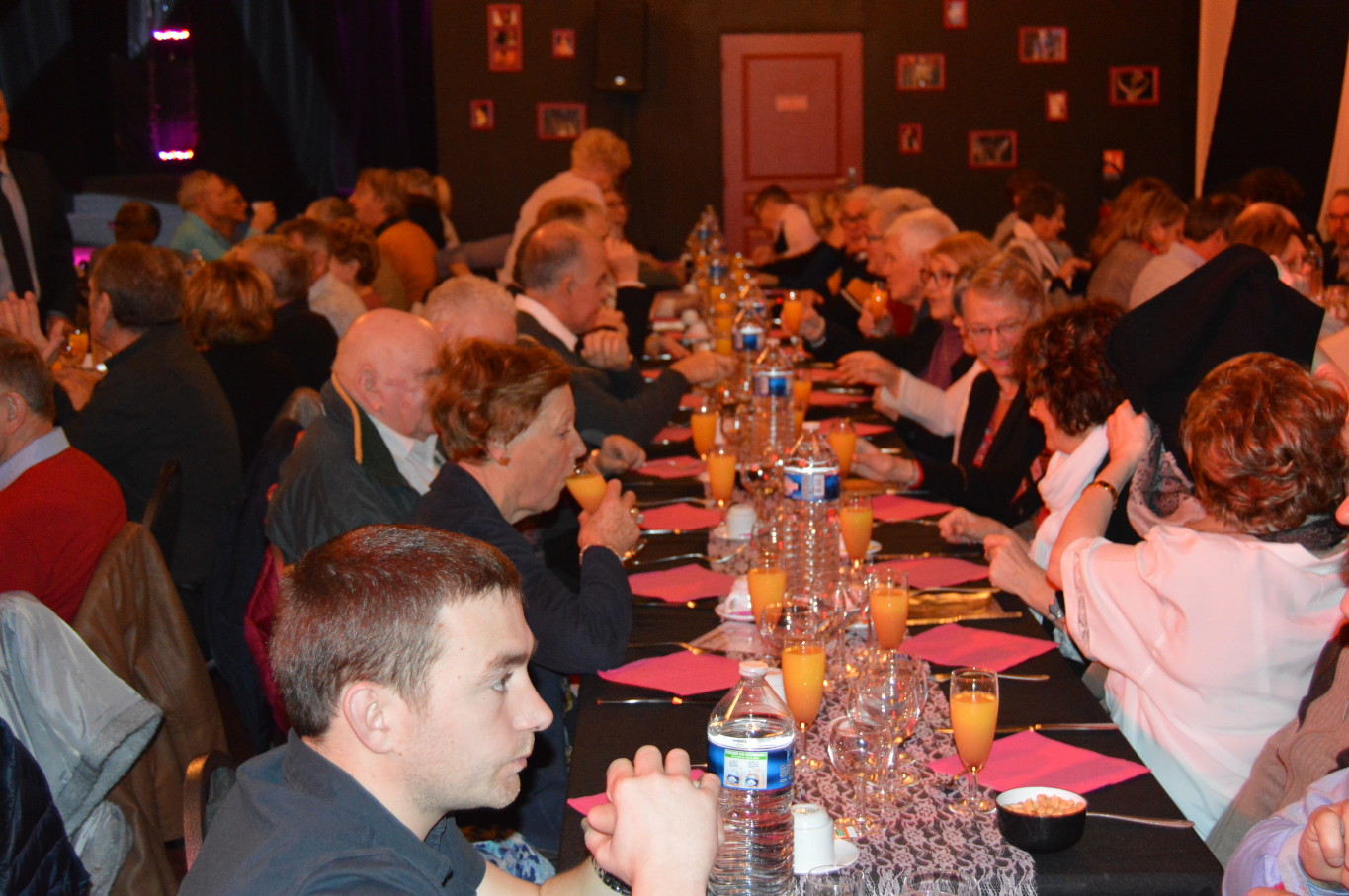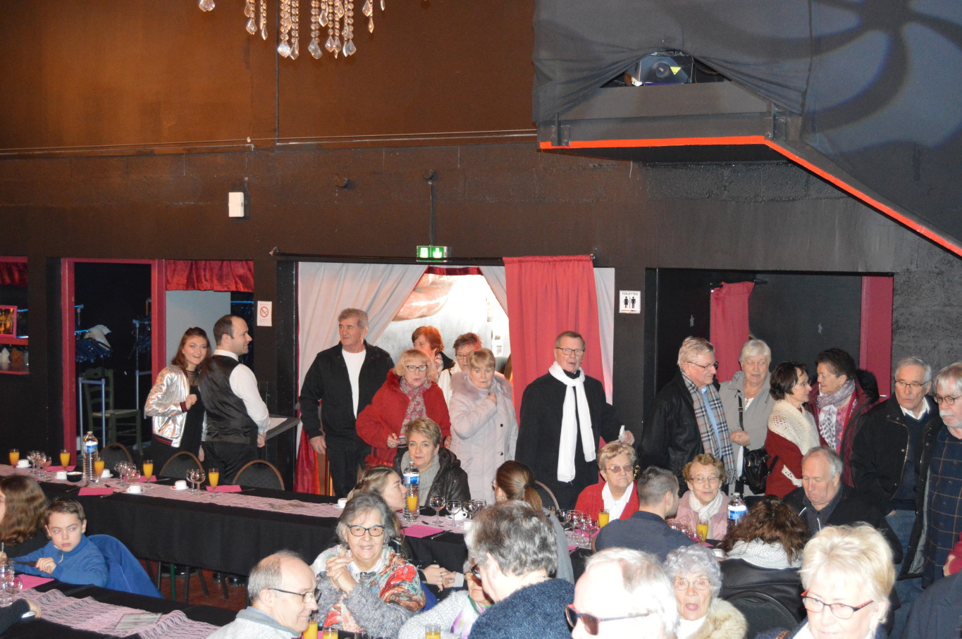 Cette année, en raison de l’indisponibilité de la salle des fêtes, le CCAS avait donné rendez-vous aux anciens de la commune, le dimanche 19 janvier sur le parking du centre Leclerc où 3 bus les attendaient pour les emmener à une journée cabaret “Aux puits enchantés” à Doudeville. Ce sont quelques 162 convives qui ont répondu à cette invitation. M. Gill Geryl, maire de la commune et Mme Marie-Claude Laurent, présidente du CCAS et les membres du conseil municipal et du CCAS ont eu le plaisir de les accueillir et de les accompagner tout au long de cette journée. Les doyens du repas étaient cette année Madame Christiane Lemée (94 ans) et Monsieur René Leroy (90 ans). Pendant et après un délicieux repas préparé par l’équipe du puits enchanté, nos invités de la journée ont pu assister à un magnifique spectacle de transformistes entourés de 2 chanteuses à la voie magnifique. Au cours de l’après-midi, nous avons eu l’occasion de souhaiter un joyeux anniversaire à Mme Réjane Josse.