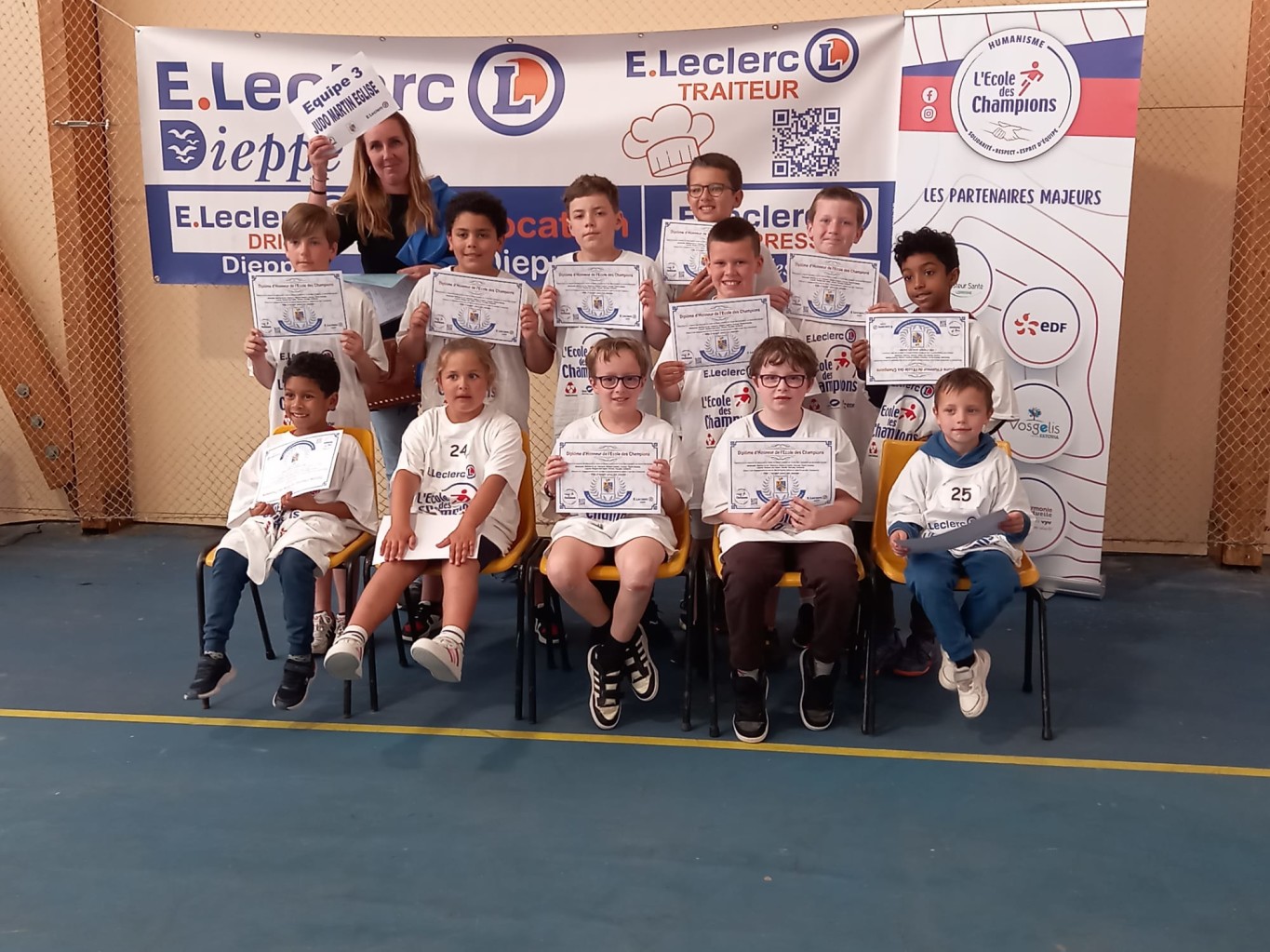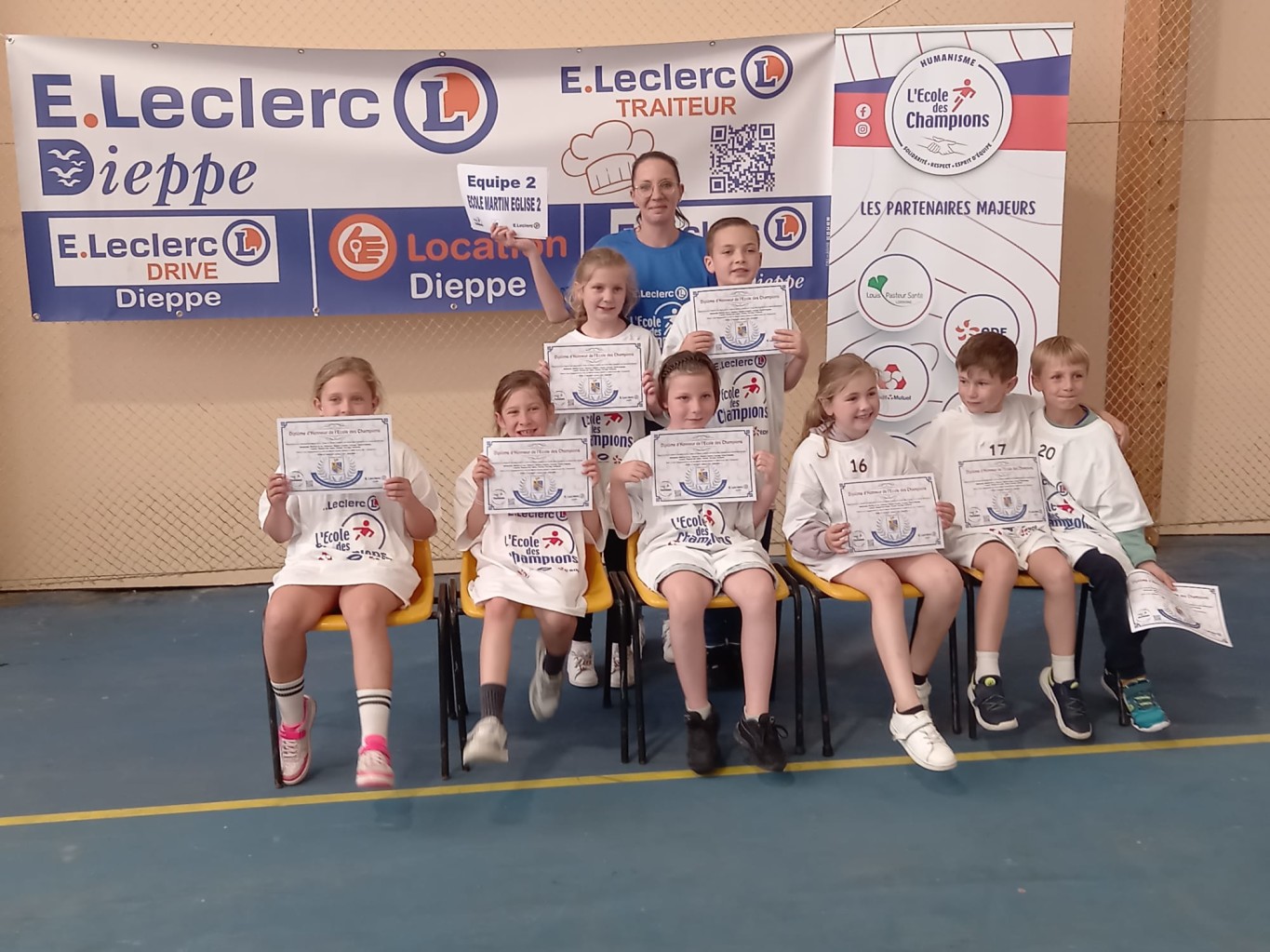 C’est la 20e édition du trophée des champions qui a eu lieu ce mercredi 4 juin 2025 autour du gymnase Patrick Depailler à Martin Église. L’occasion pour une centaine d’enfants de 7 à 12 ans de découvrir des disciplines sportives ou citoyennes de manière ludique. 10 équipes étaient présentes et issues pour la plupart du milieu associatif de l’agglomération (Les clubs de basket d’Arques et de Rouxmesnil-Bouteilles, DUC Rugby et hand-ball, le club de karaté d’Arques et le club de judo de Martin-Église), auxquelles se sont ajoutés les élèves de l’école de Martin-Église, une équipe Leclerc et l’équipe des finalistes 2024.