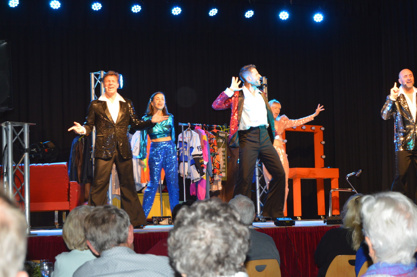 Avant le début du repas, Madame Yvette Abraham (90 ans) et Monsieur Maurice Bastard (96 ans), la doyenne et le doyen de la journée ont été mis à l’honneur. Après un délicieux repas préparé par la cuisinière de notre groupe scolaire et son équipe, nos invités de la journée ont pu assister à un magnifique spectacle avec des artistes de qualité. Ainsi, pendant près de 2 heures, ils ont pu regarder la comédie musicale “Cette année-là” proposée par la compagnie Trabucco. Ce spectacle a transporté les spectateurs au rythme de l’avènement du disco et du rock’n’roll à la fin des années 70, début 80.