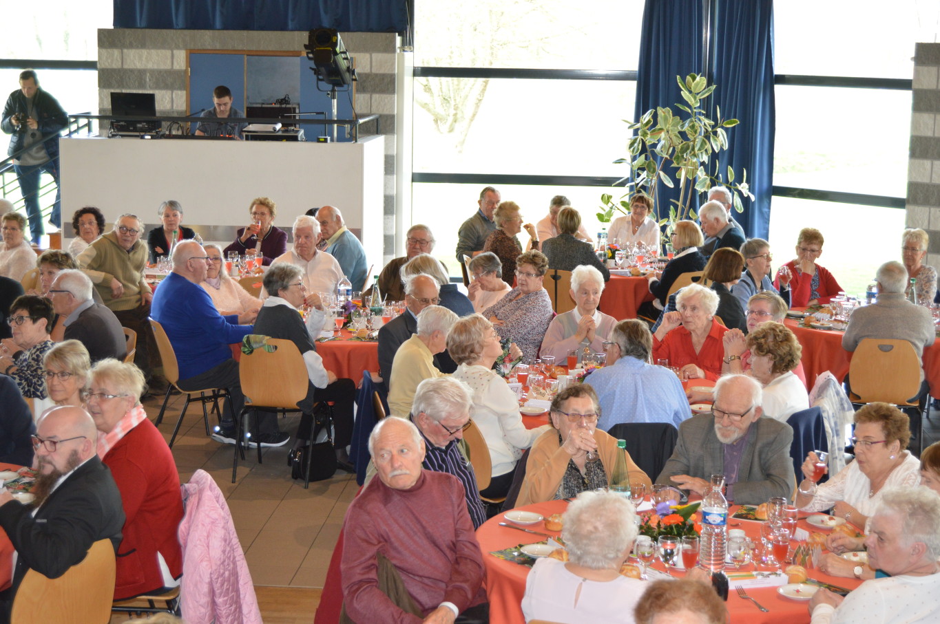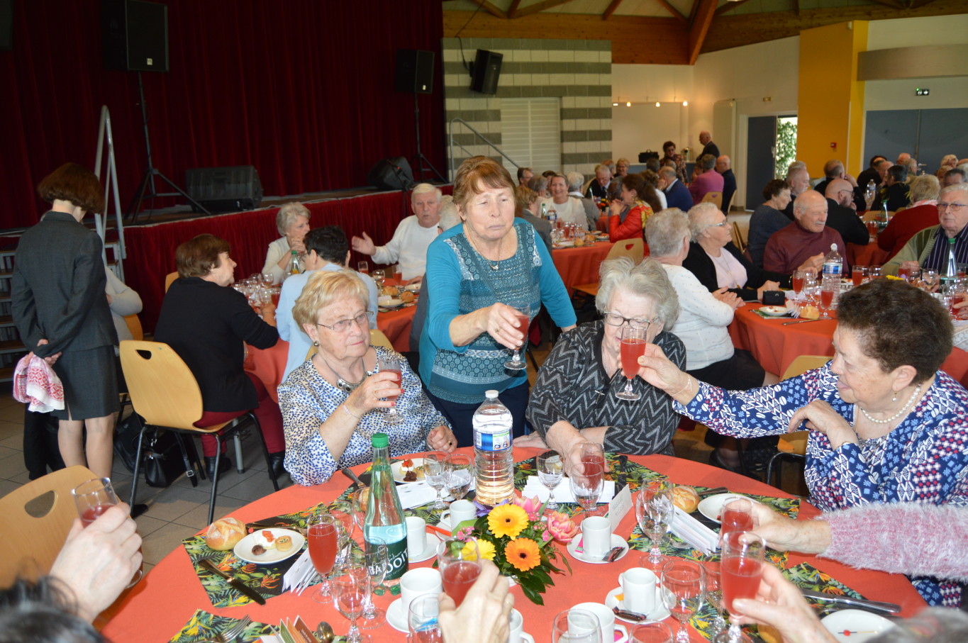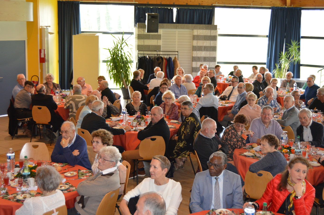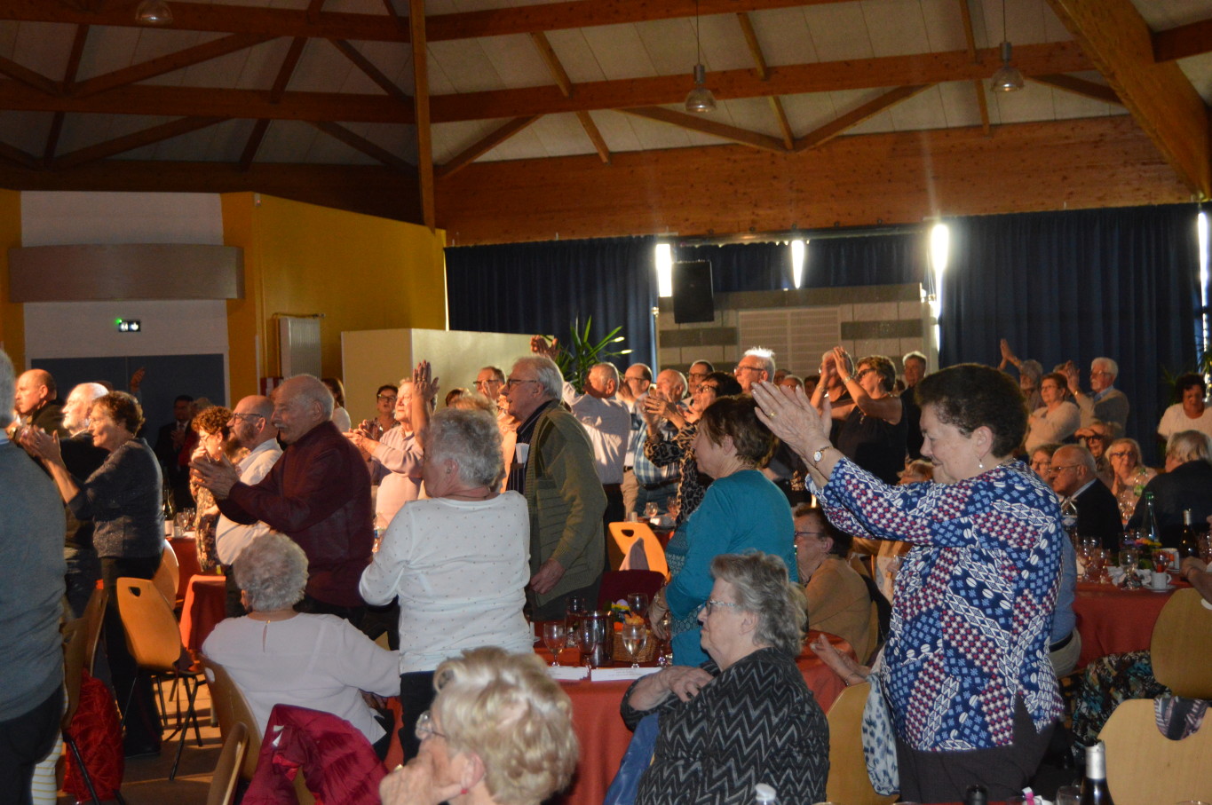 Nos anciens de la commune étaient conviés à la salle des fêtes le dimanche 10 mars 2019 ; ce sont 170 convives qui ont répondu à cette invitation. M. Gill Geryl, maire de la commune et Mme Marie-Claude Laurent, présidente du CCAS et les membres du conseil municipal et du CCAS ont eu le plaisir de les accueillir. Cette année, le repas des anciens a été programmé un peu plus tôt que les années précédentes, en effet, la construction du nouveau groupe scolaire nous impose un déménagement vers un groupe scolaire provisoire qui sera situé à la salle des fêtes. Ainsi, les enfants déjeuneront dans la grande salle qui sera leur nouveau restaurant scolaire pendant toute la durée de la construction.Lors de son discours, Mr le maire a souhaité rendre un vibrant hommage à Mr André Desaubry qui nous a quitté brutalement en début d’année. A ce propos, dès le 1 juin, la salle des fêtes portera son nom. Il a également rappeler que c’était son dernier repas en tant que maire et que l’an prochain il viendra en tant qu’invité.