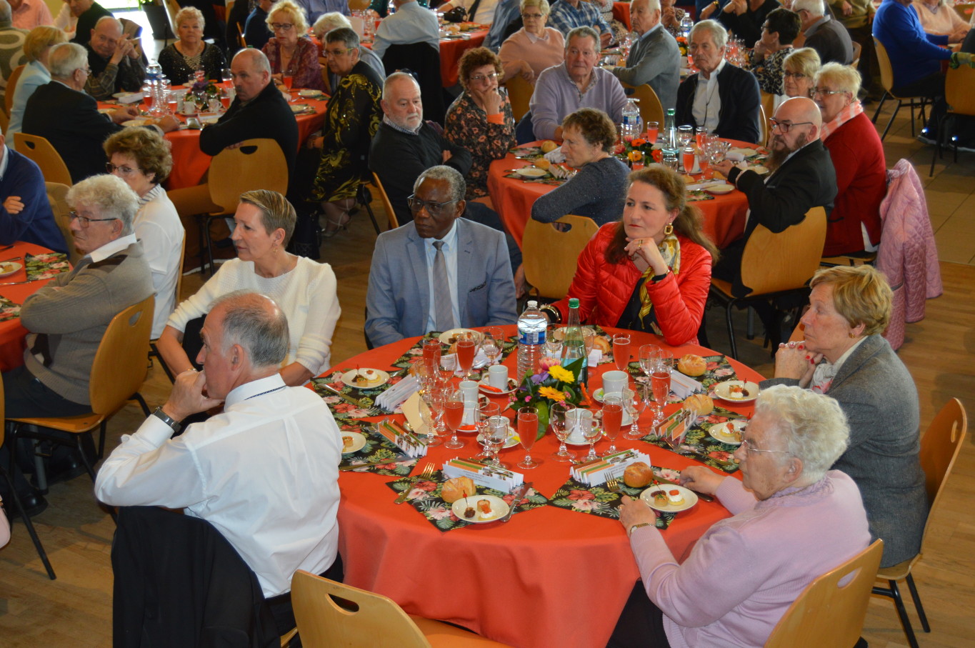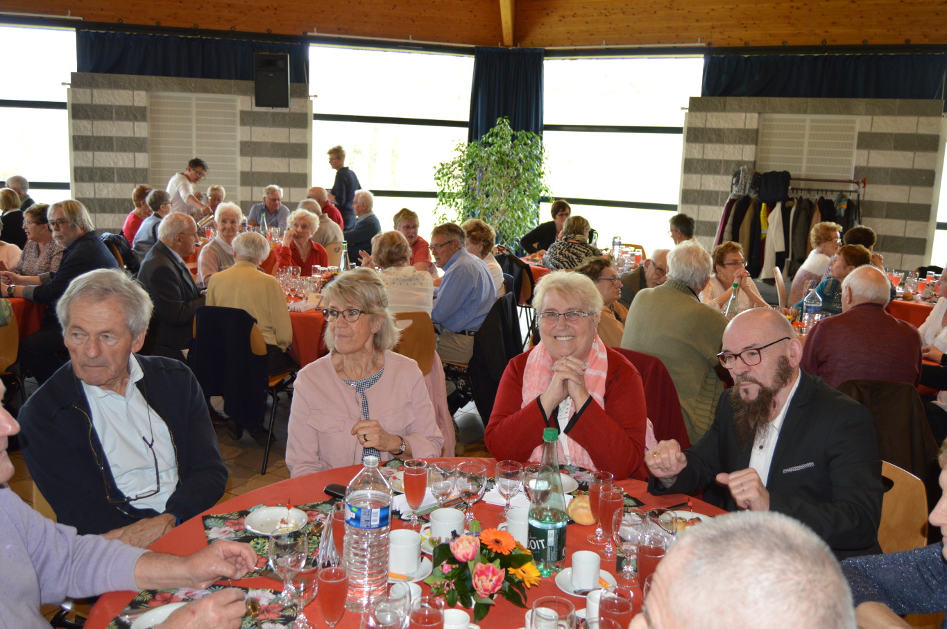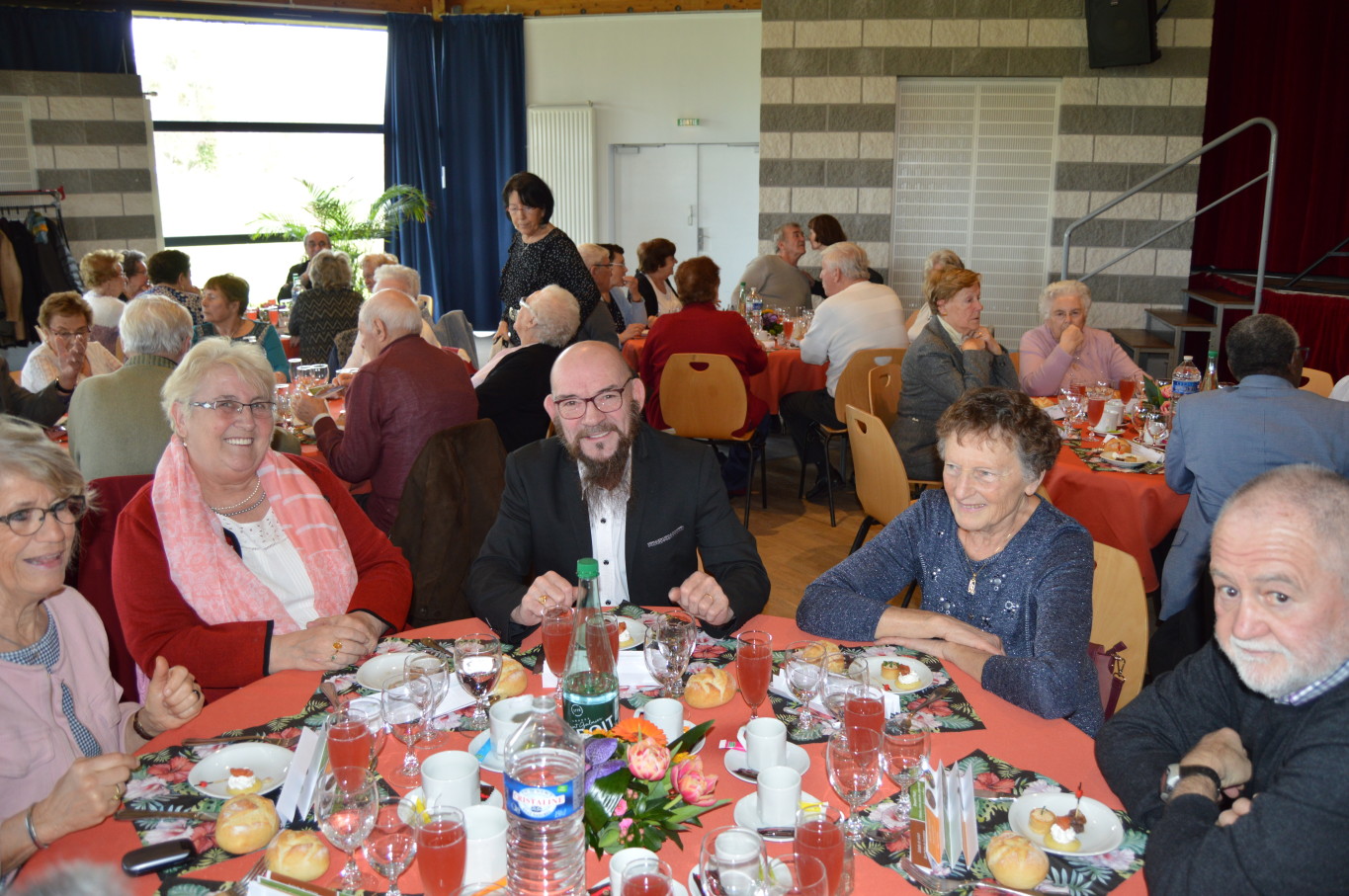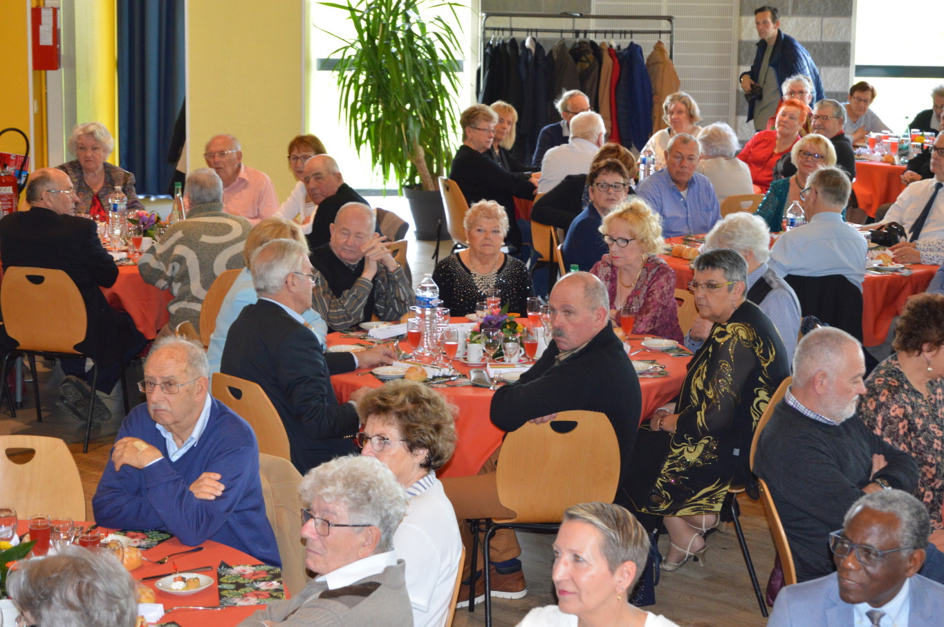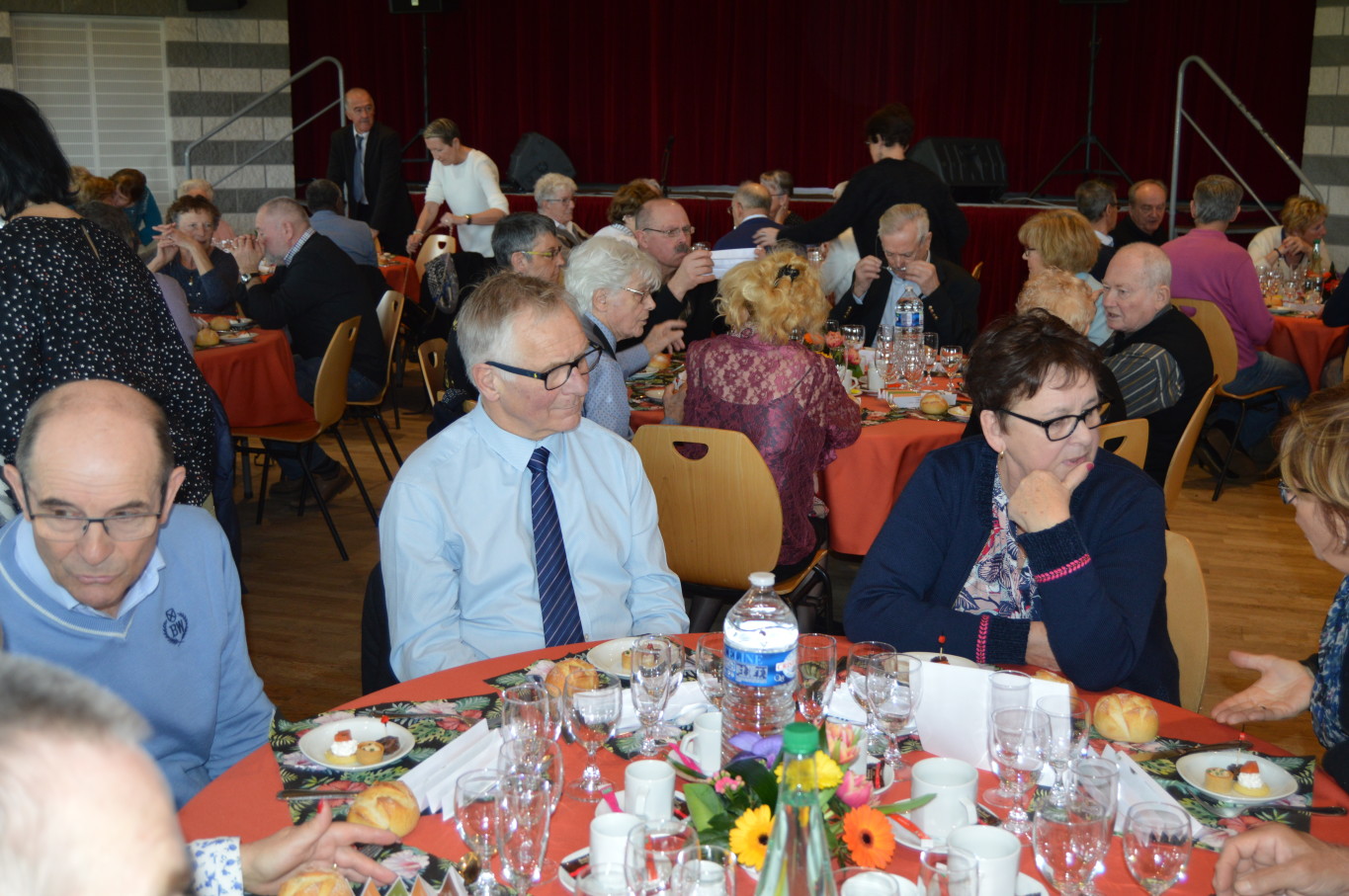 Nos anciens de la commune étaient conviés à la salle des fêtes le dimanche 10 mars 2019 ; ce sont 170 convives qui ont répondu à cette invitation. M. Gill Geryl, maire de la commune et Mme Marie-Claude Laurent, présidente du CCAS et les membres du conseil municipal et du CCAS ont eu le plaisir de les accueillir. Cette année, le repas des anciens a été programmé un peu plus tôt que les années précédentes, en effet, la construction du nouveau groupe scolaire nous impose un déménagement vers un groupe scolaire provisoire qui sera situé à la salle des fêtes. Ainsi, les enfants déjeuneront dans la grande salle qui sera leur nouveau restaurant scolaire pendant toute la durée de la construction.Lors de son discours, Mr le maire a souhaité rendre un vibrant hommage à Mr André Desaubry qui nous a quitté brutalement en début d’année. A ce propos, dès le 1 juin, la salle des fêtes portera son nom. Il a également rappeler que c’était son dernier repas en tant que maire et que l’an prochain il viendra en tant qu’invité.