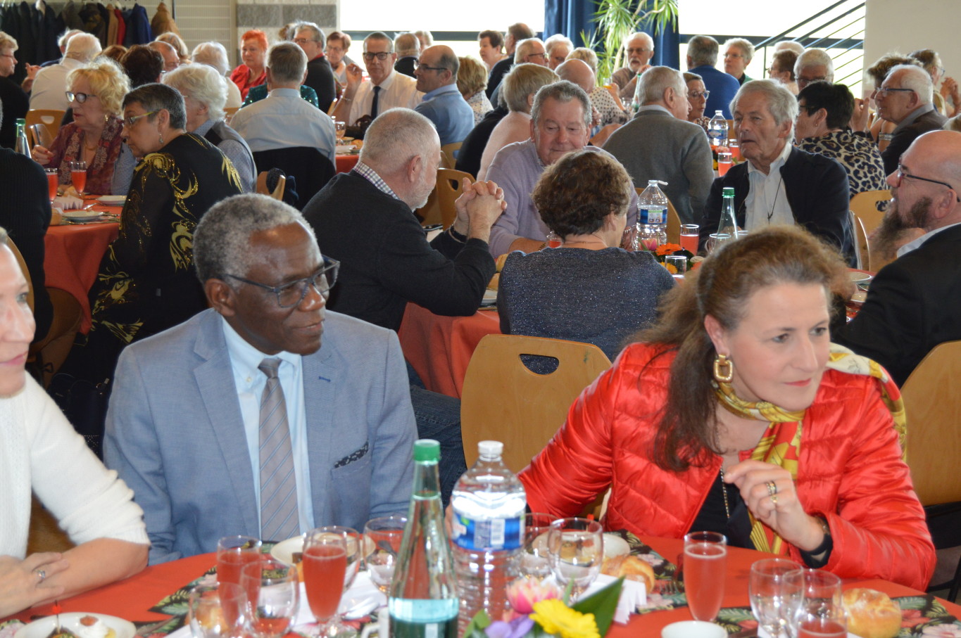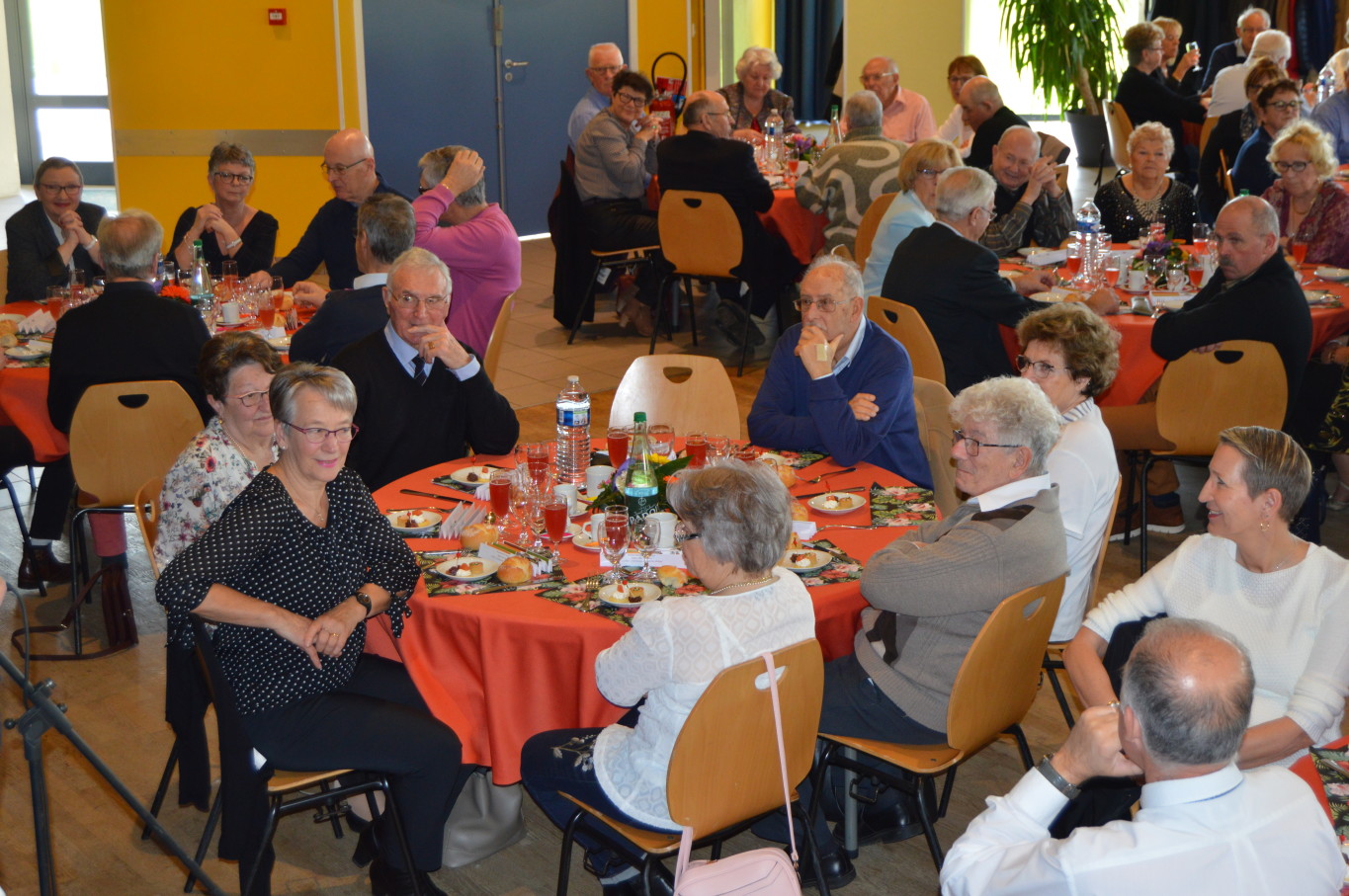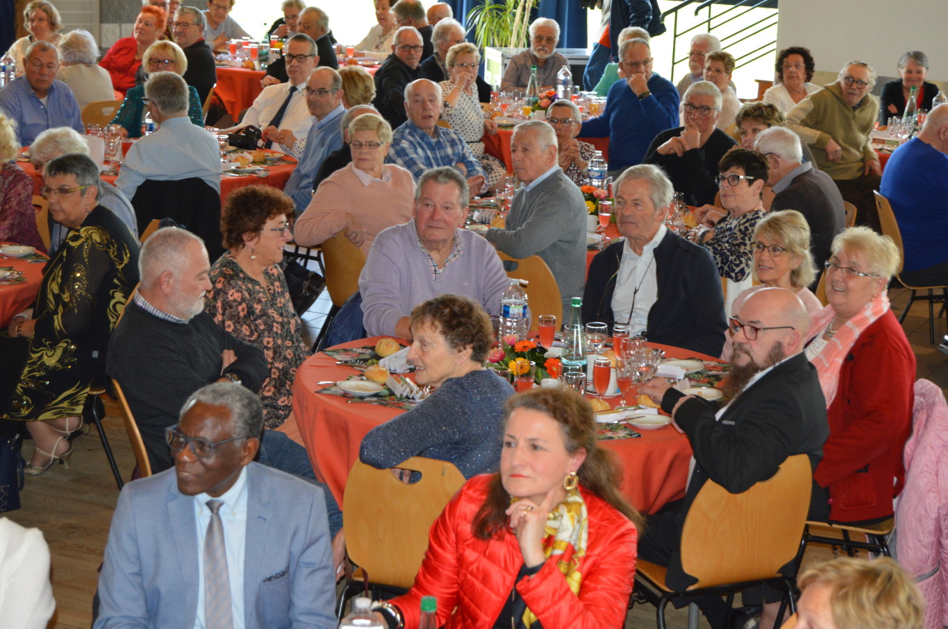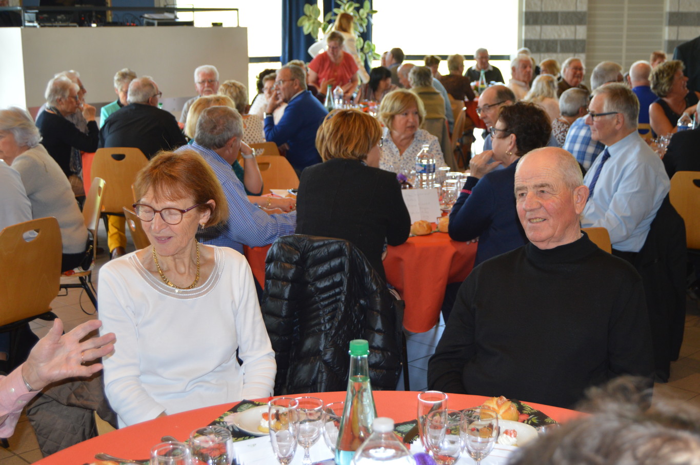 Nos anciens de la commune étaient conviés à la salle des fêtes le dimanche 10 mars 2019 ; ce sont 170 convives qui ont répondu à cette invitation. M. Gill Geryl, maire de la commune et Mme Marie-Claude Laurent, présidente du CCAS et les membres du conseil municipal et du CCAS ont eu le plaisir de les accueillir. Cette année, le repas des anciens a été programmé un peu plus tôt que les années précédentes, en effet, la construction du nouveau groupe scolaire nous impose un déménagement vers un groupe scolaire provisoire qui sera situé à la salle des fêtes. Ainsi, les enfants déjeuneront dans la grande salle qui sera leur nouveau restaurant scolaire pendant toute la durée de la construction.Lors de son discours, Mr le maire a souhaité rendre un vibrant hommage à Mr André Desaubry qui nous a quitté brutalement en début d’année. A ce propos, dès le 1 juin, la salle des fêtes portera son nom. Il a également rappeler que c’était son dernier repas en tant que maire et que l’an prochain il viendra en tant qu’invité.