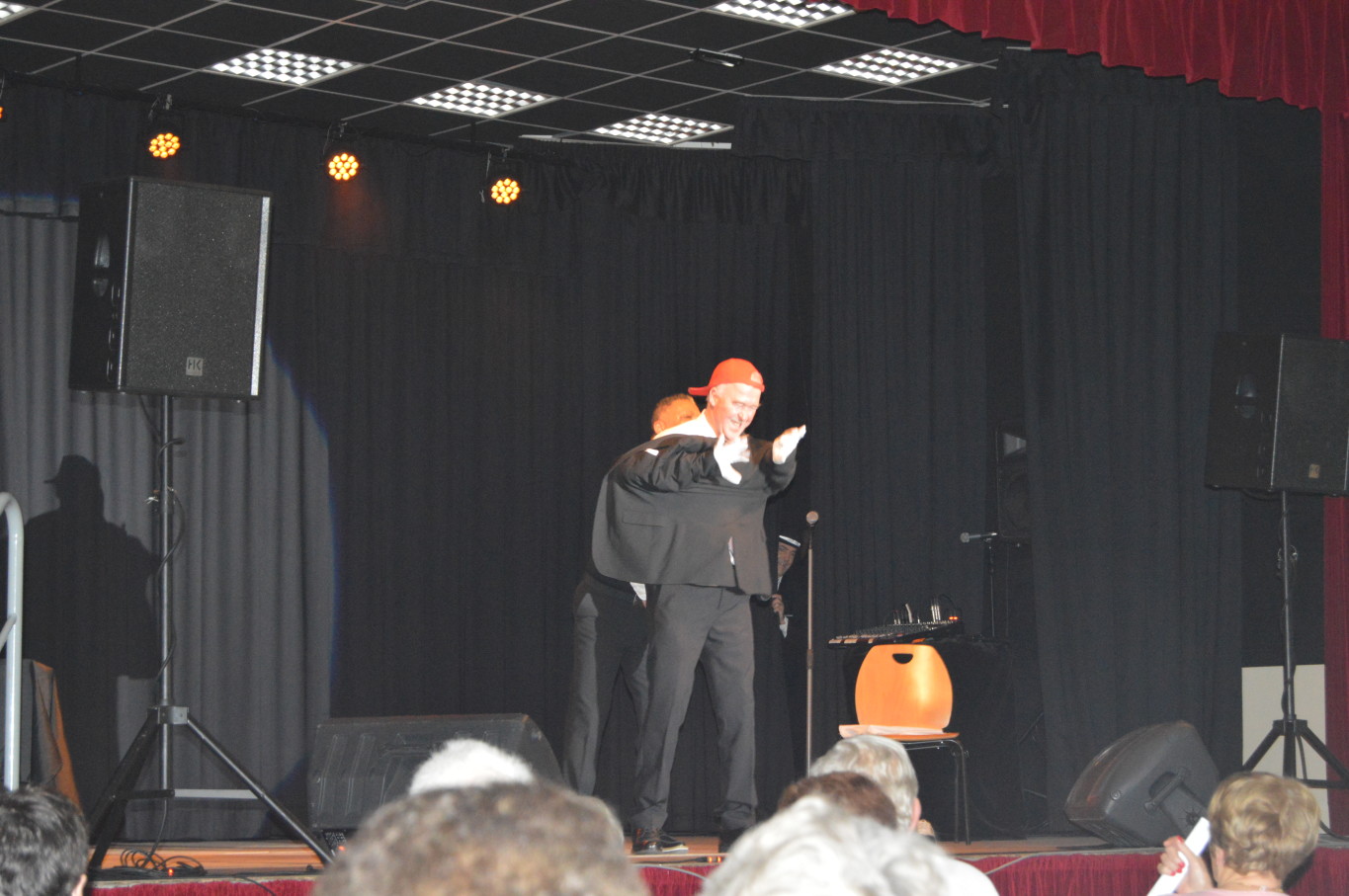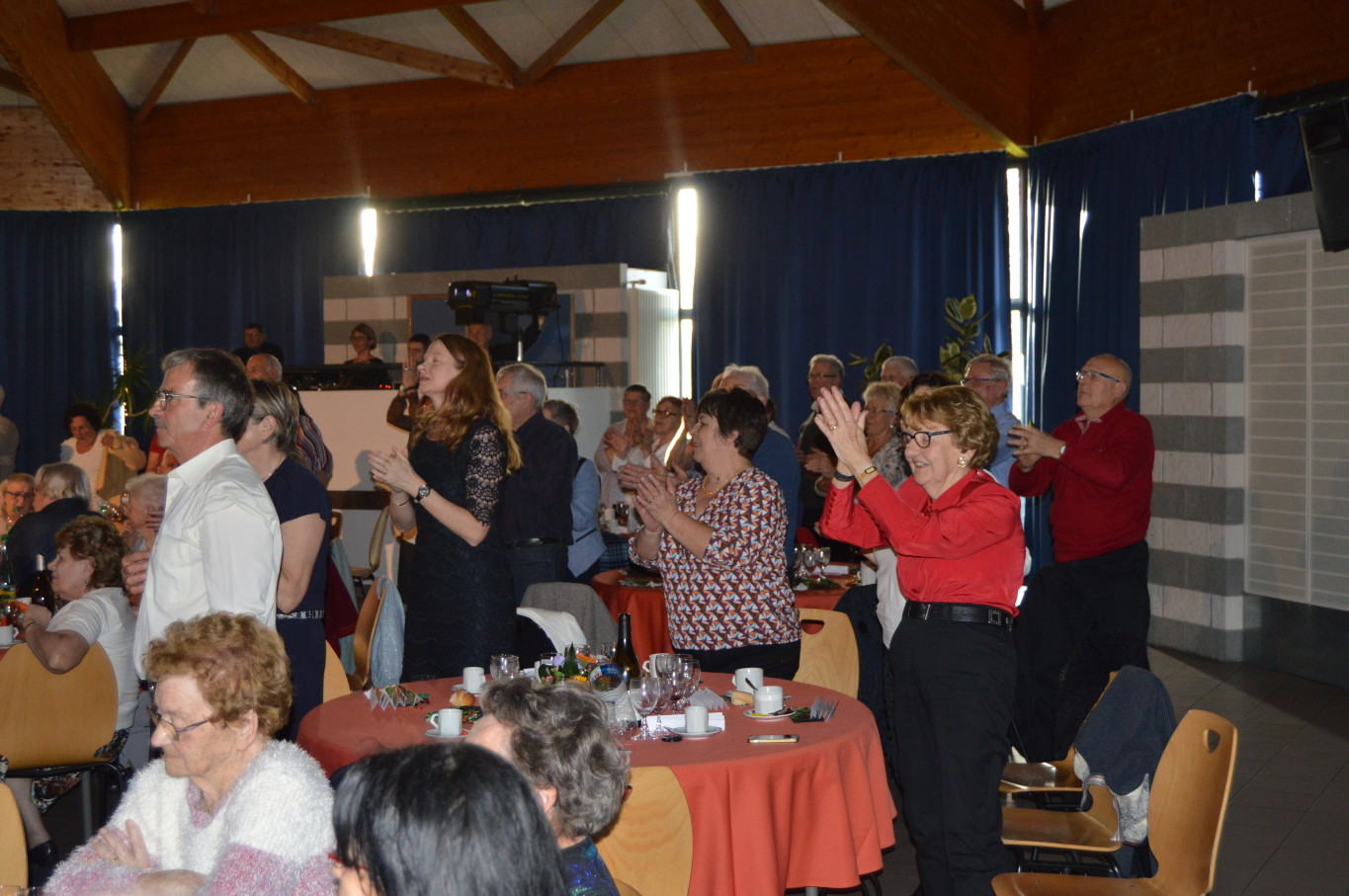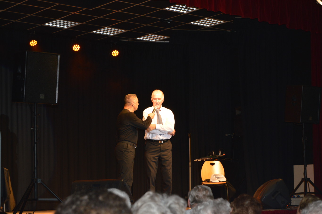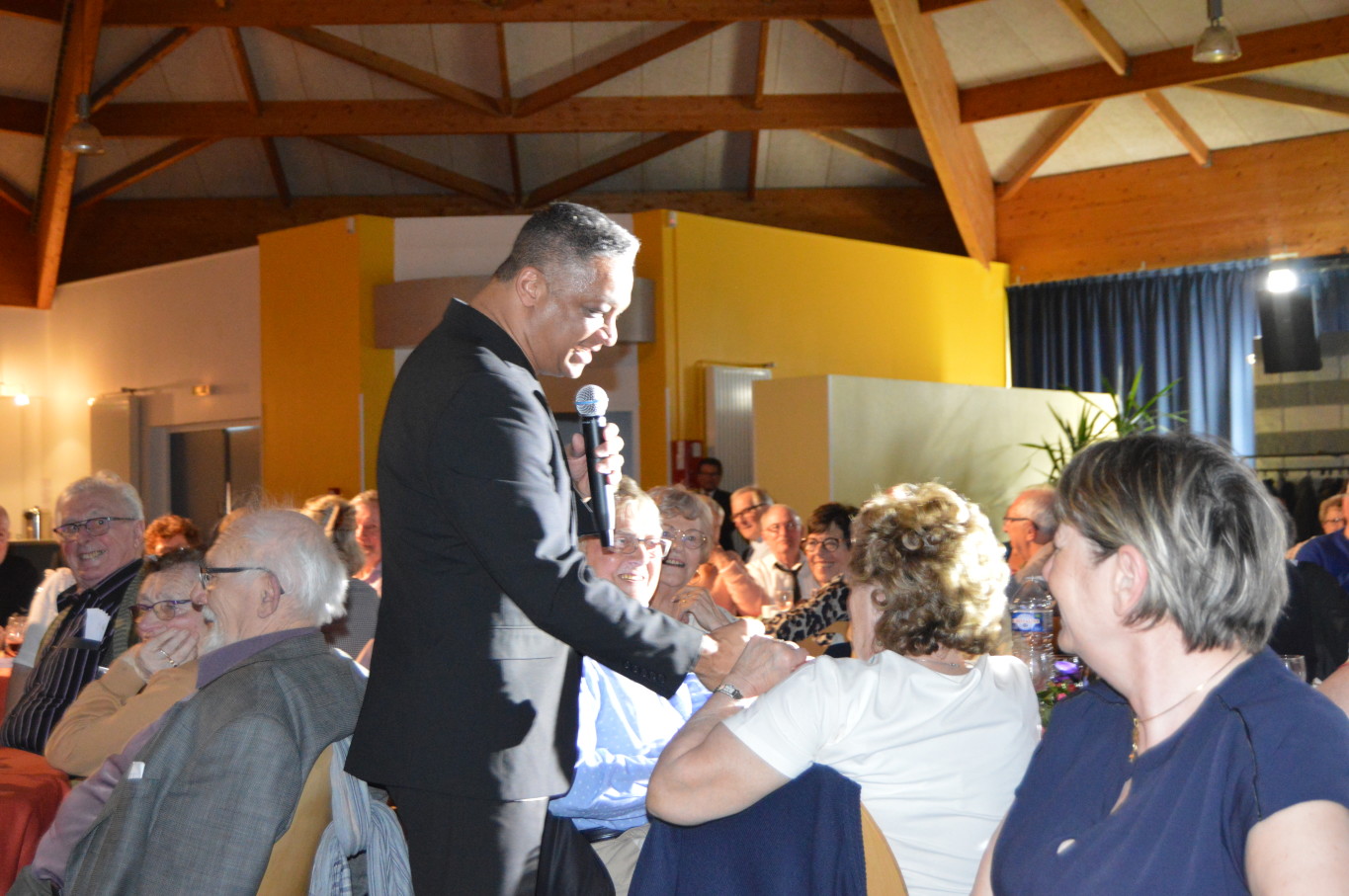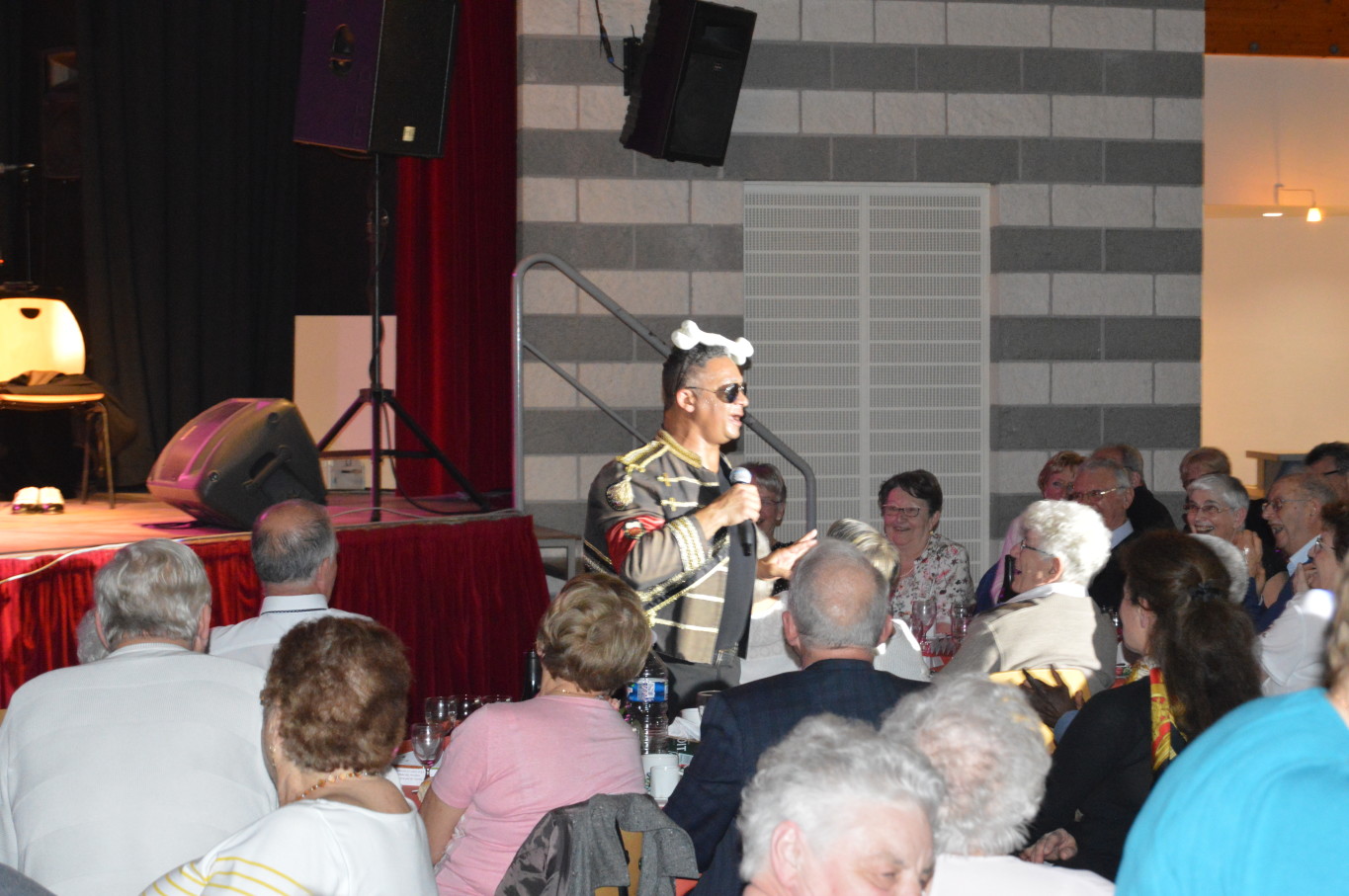 Avant le début du repas, Madame Marie Louise Antheaume (92 ans) et Monsieur Fernand Clément (93 ans), la doyenne et le doyen de la journée ont été mis à l’honneur. Après un délicieux repas préparé par l’équipe de Normandie Traiteur et après avoir dégusté le dessert préparé par la boulangerie Prieur, nos invités de la journée ont pu assister à un magnifique spectacle avec des artistes de qualité. Ainsi, pendant le repas, ils ont pu écouter Maria Dessart, chanteuse Roumaine, puis pendant plus de 1h, ils ont pu rire avec le spectacle d’Alex Lekouid, humoriste toulousain.