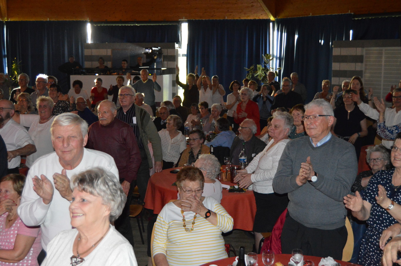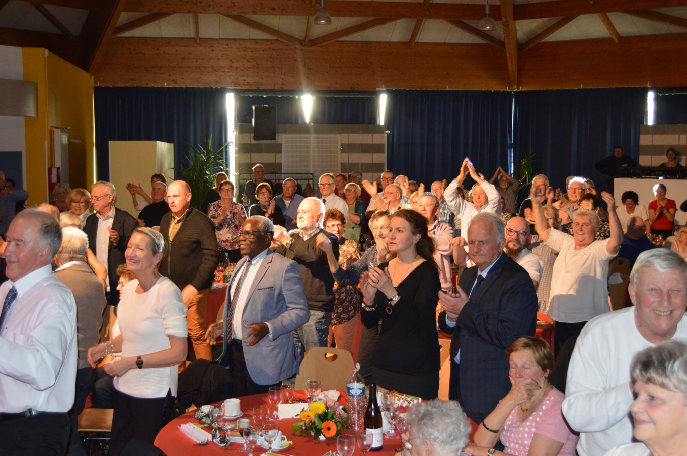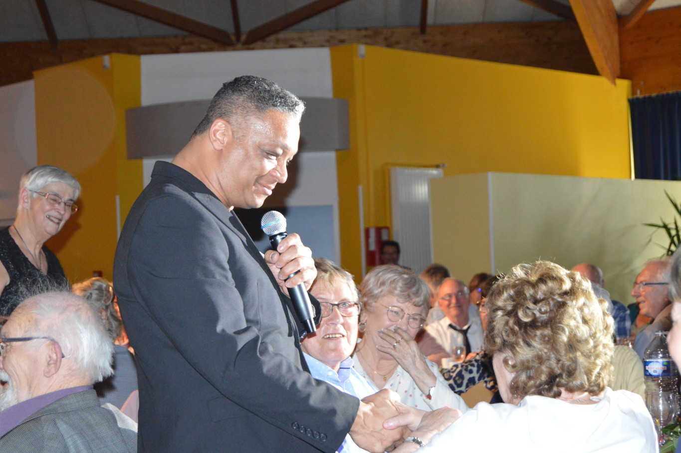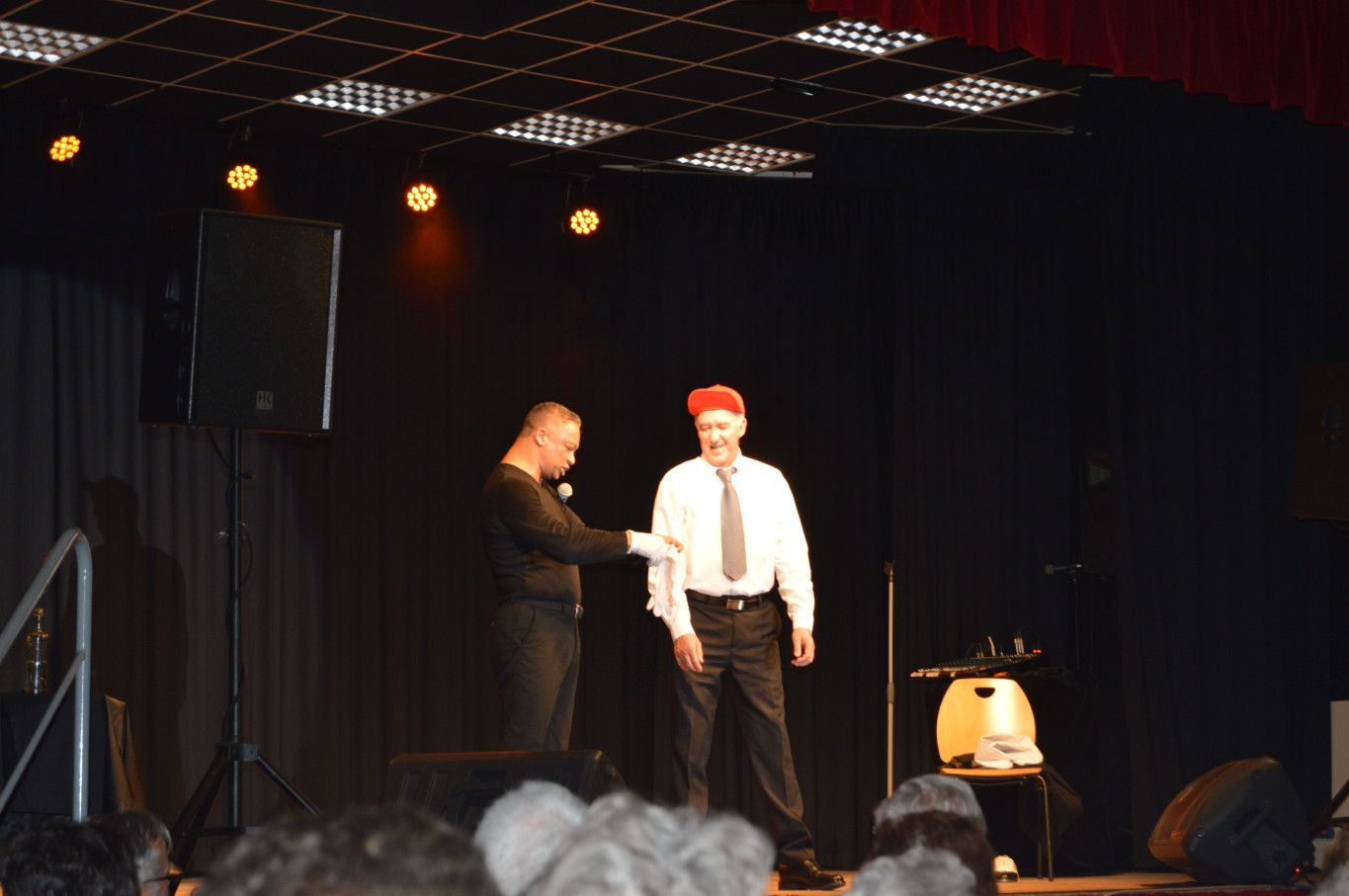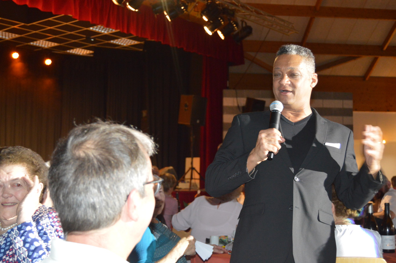 Avant le début du repas, Madame Marie Louise Antheaume (92 ans) et Monsieur Fernand Clément (93 ans), la doyenne et le doyen de la journée ont été mis à l’honneur. Après un délicieux repas préparé par l’équipe de Normandie Traiteur et après avoir dégusté le dessert préparé par la boulangerie Prieur, nos invités de la journée ont pu assister à un magnifique spectacle avec des artistes de qualité. Ainsi, pendant le repas, ils ont pu écouter Maria Dessart, chanteuse Roumaine, puis pendant plus de 1h, ils ont pu rire avec le spectacle d’Alex Lekouid, humoriste toulousain.