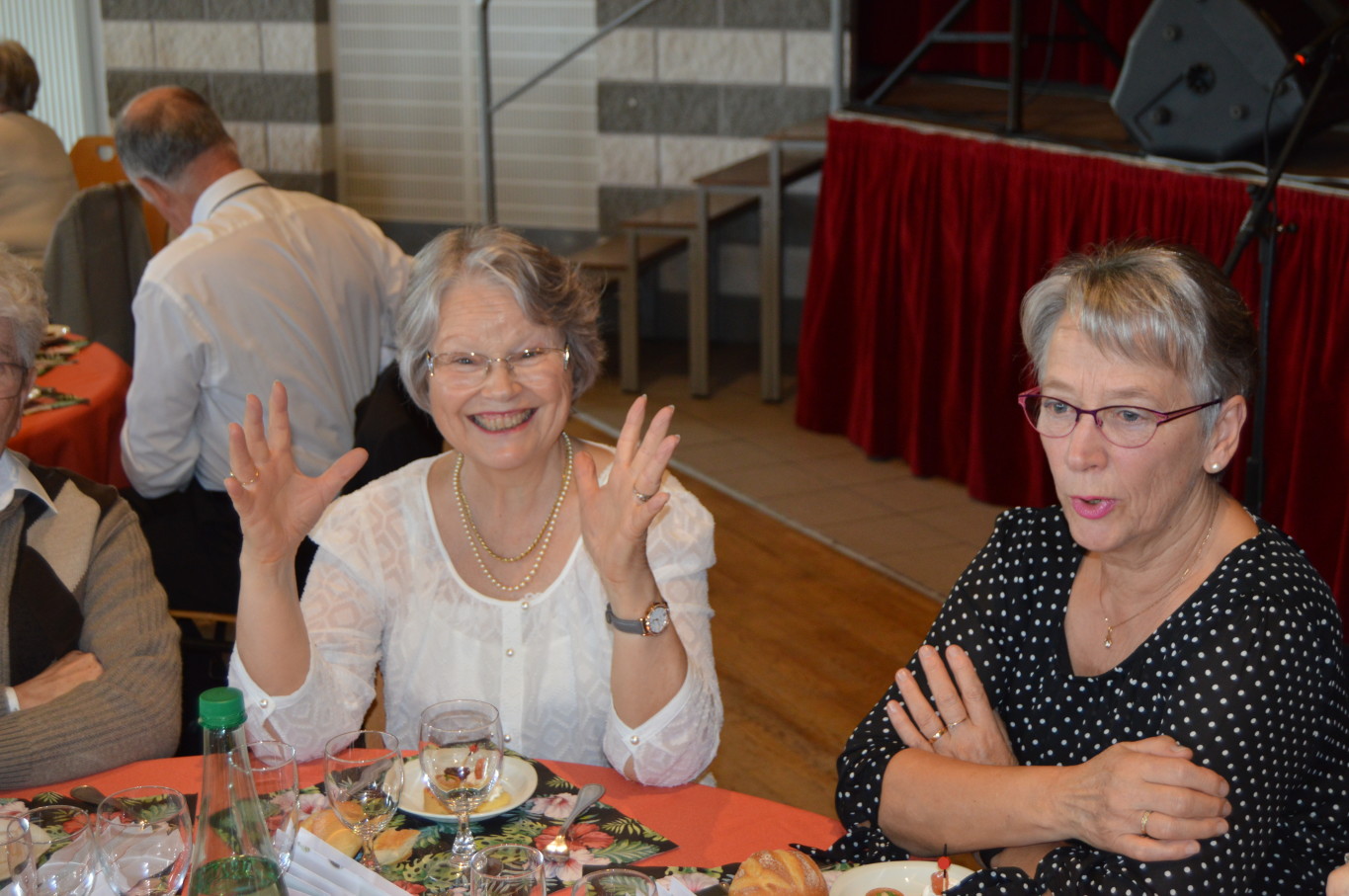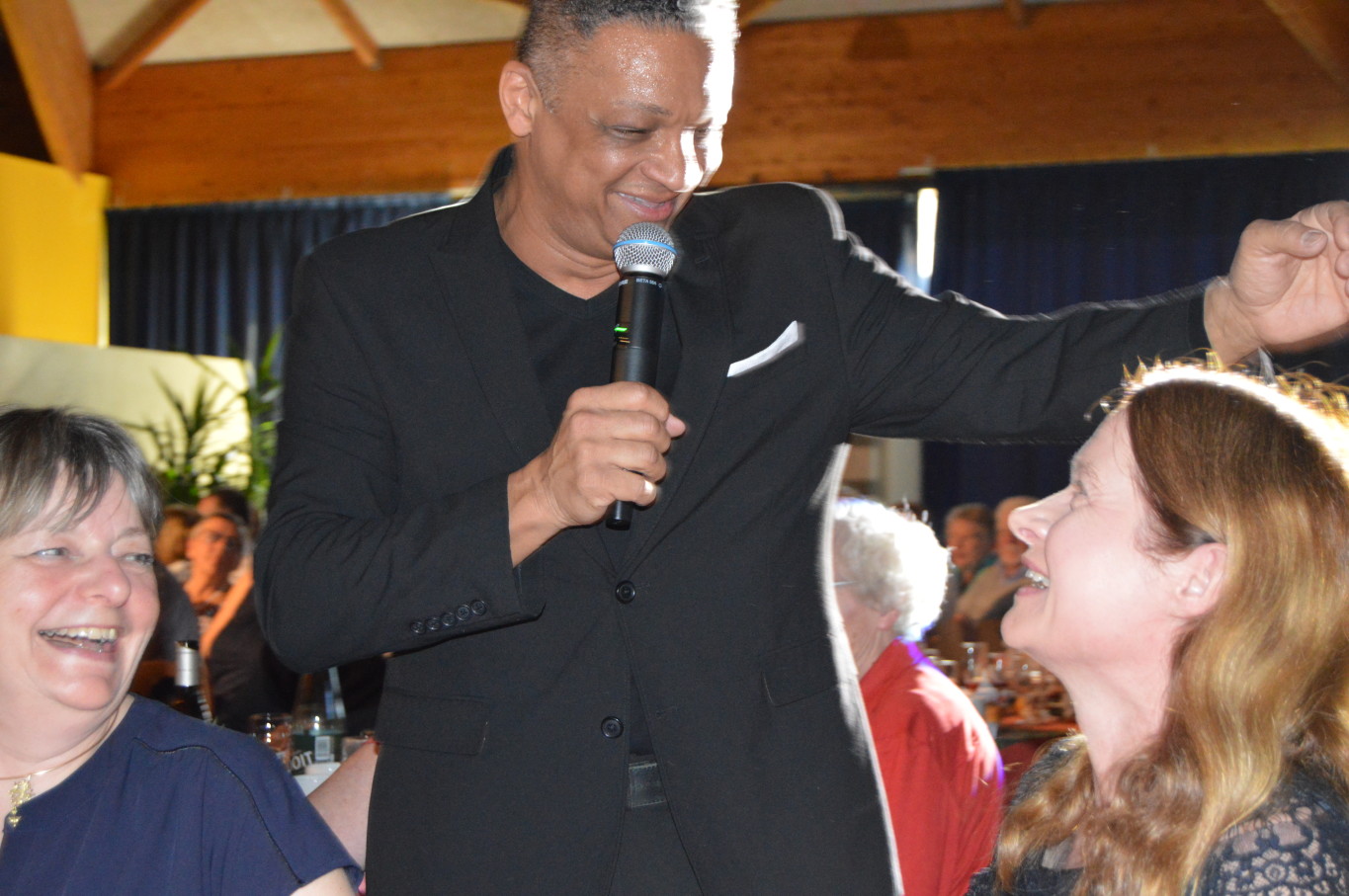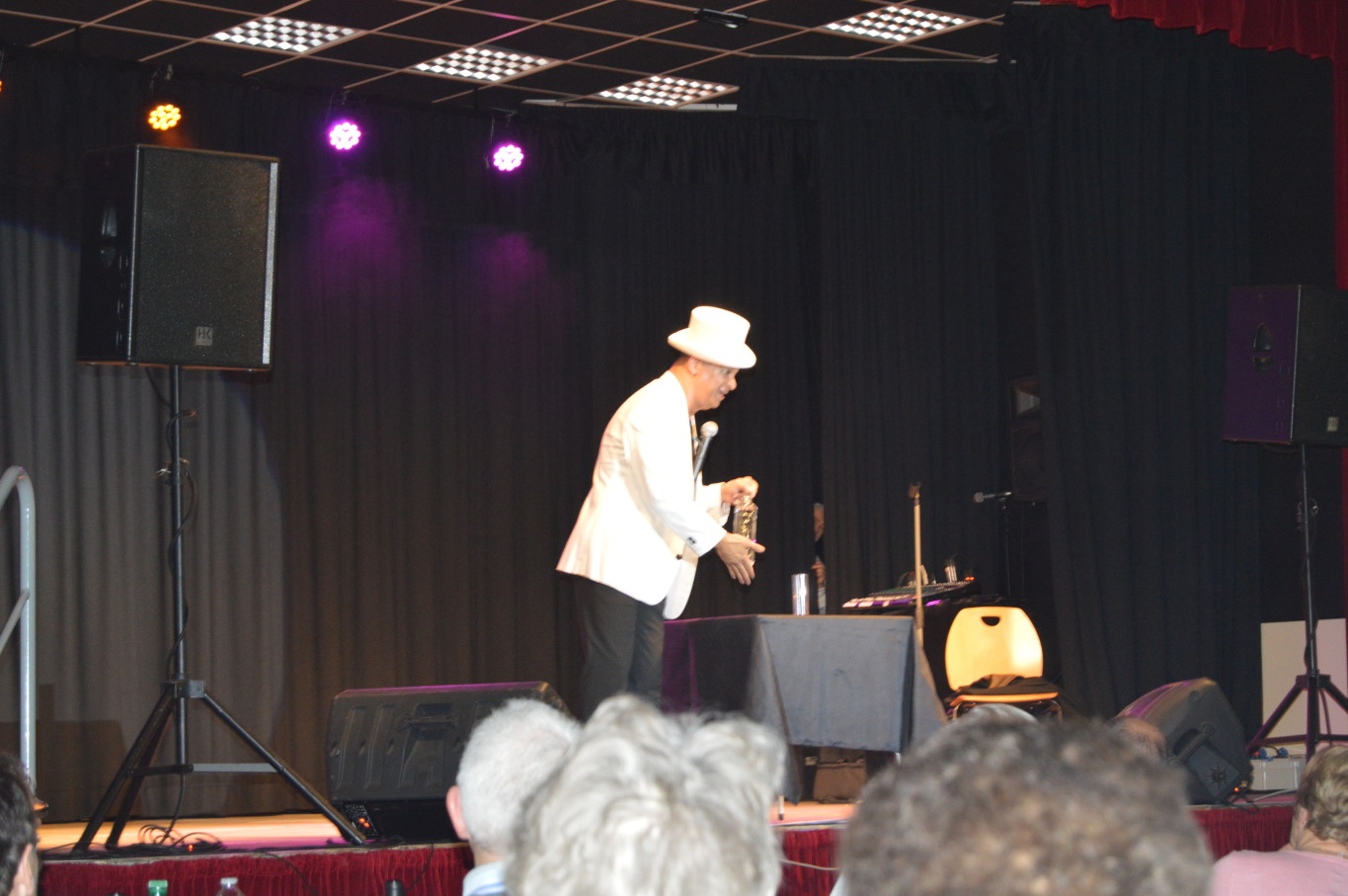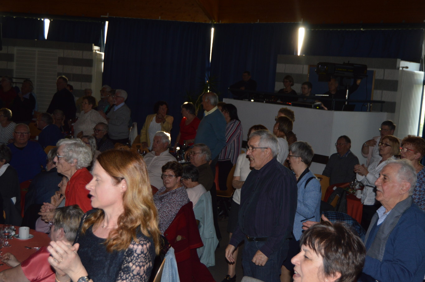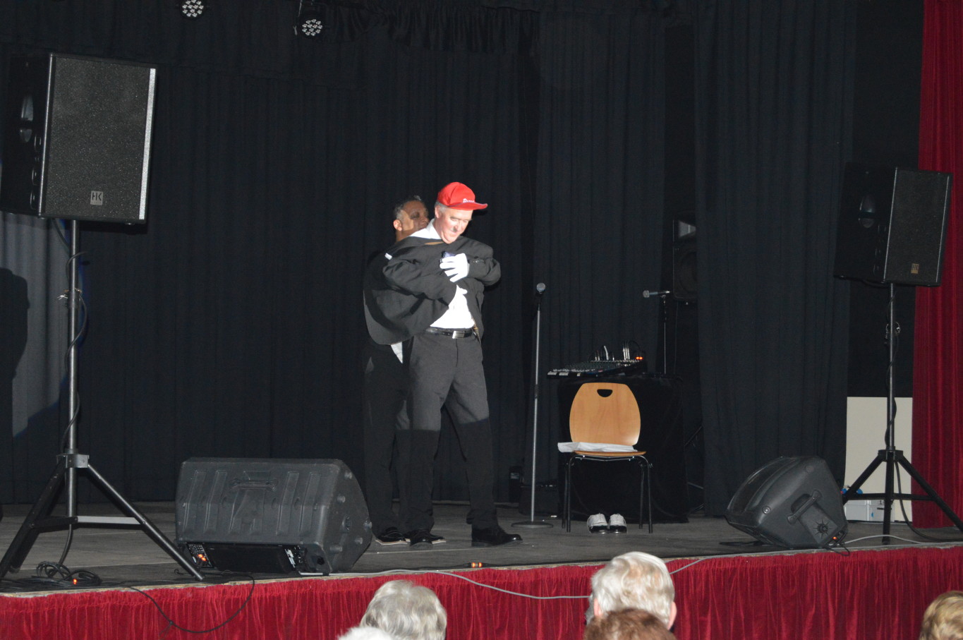 Avant le début du repas, Madame Marie Louise Antheaume (92 ans) et Monsieur Fernand Clément (93 ans), la doyenne et le doyen de la journée ont été mis à l’honneur. Après un délicieux repas préparé par l’équipe de Normandie Traiteur et après avoir dégusté le dessert préparé par la boulangerie Prieur, nos invités de la journée ont pu assister à un magnifique spectacle avec des artistes de qualité. Ainsi, pendant le repas, ils ont pu écouter Maria Dessart, chanteuse Roumaine, puis pendant plus de 1h, ils ont pu rire avec le spectacle d’Alex Lekouid, humoriste toulousain.
