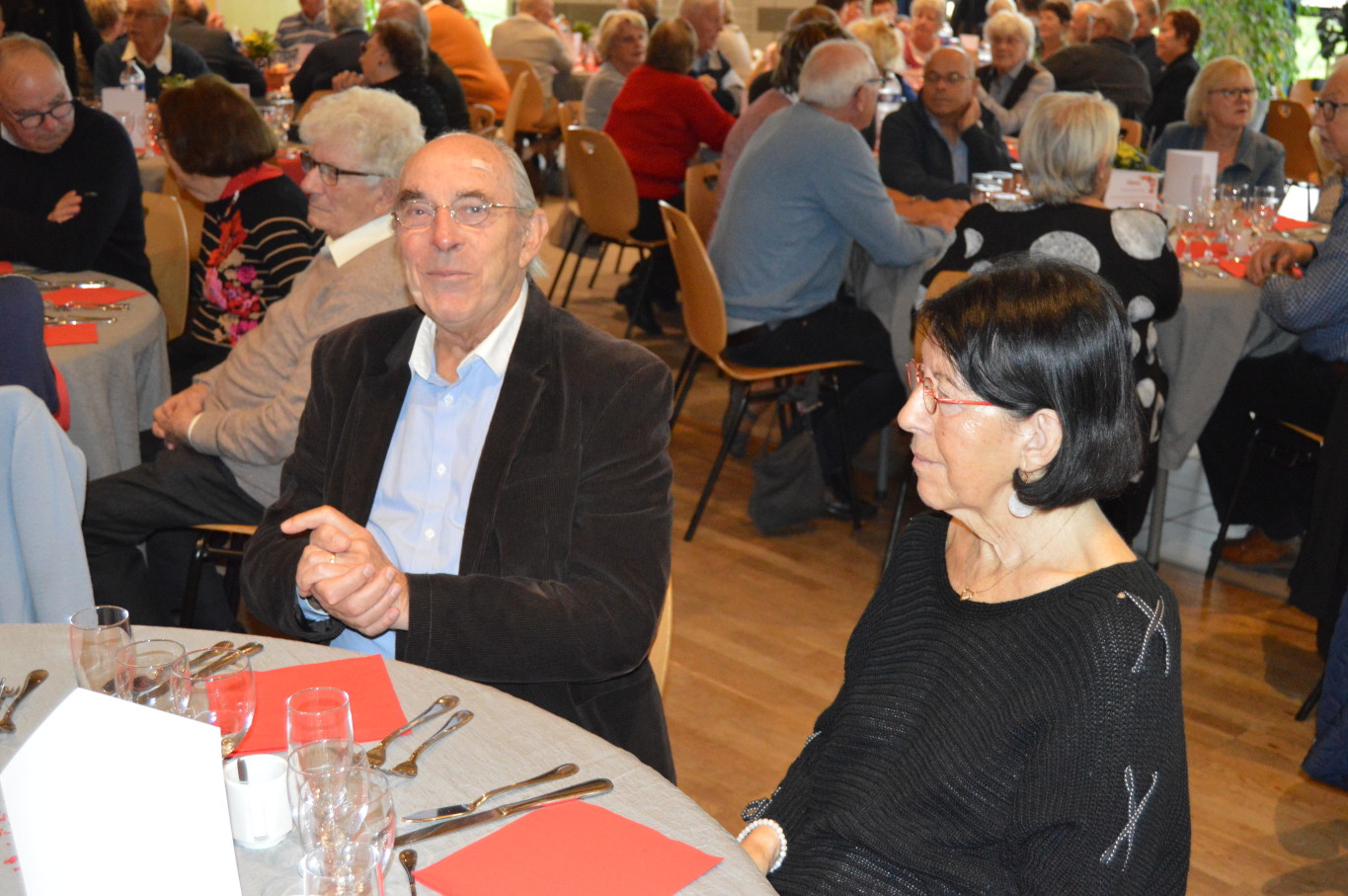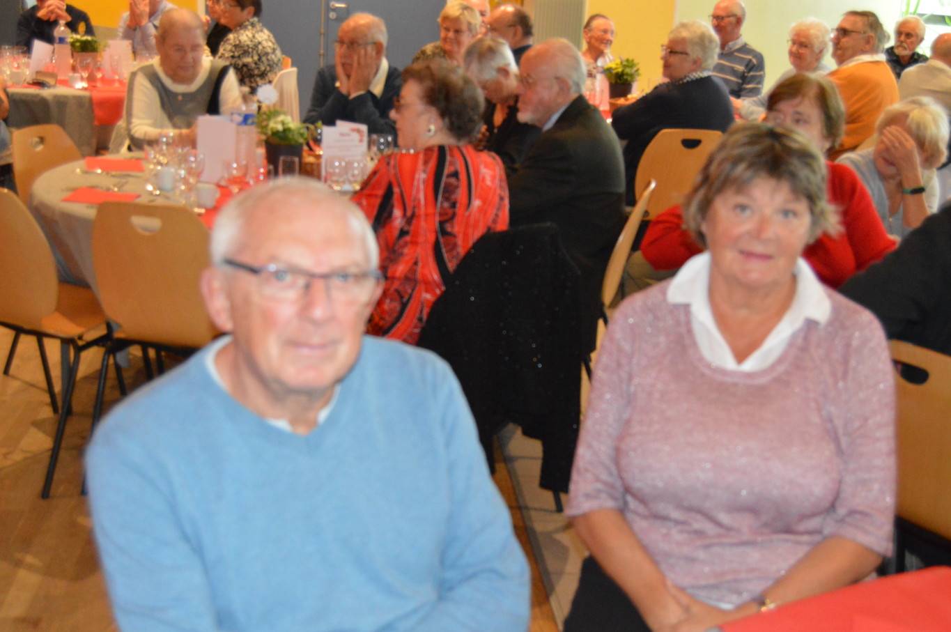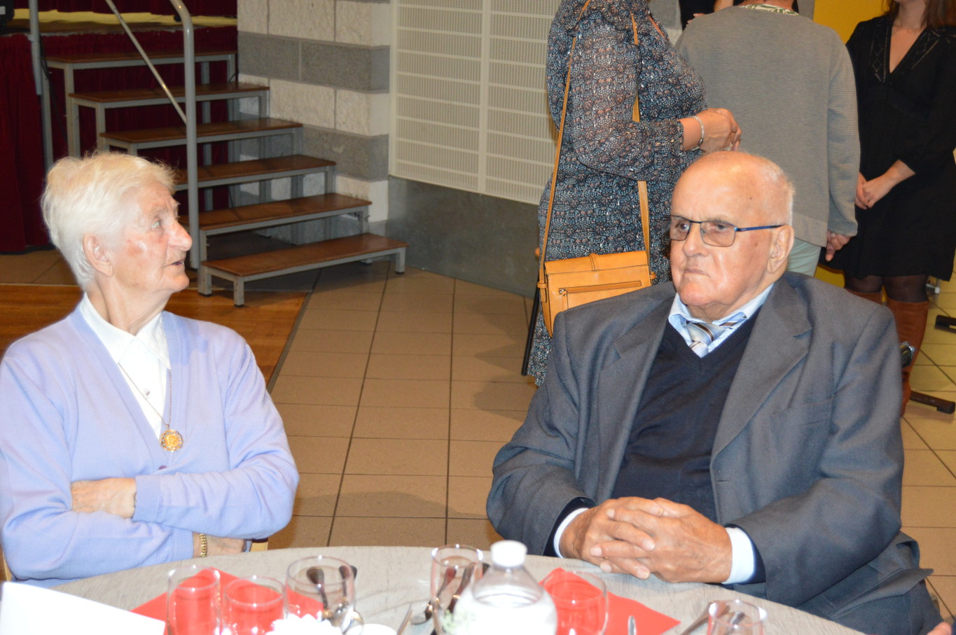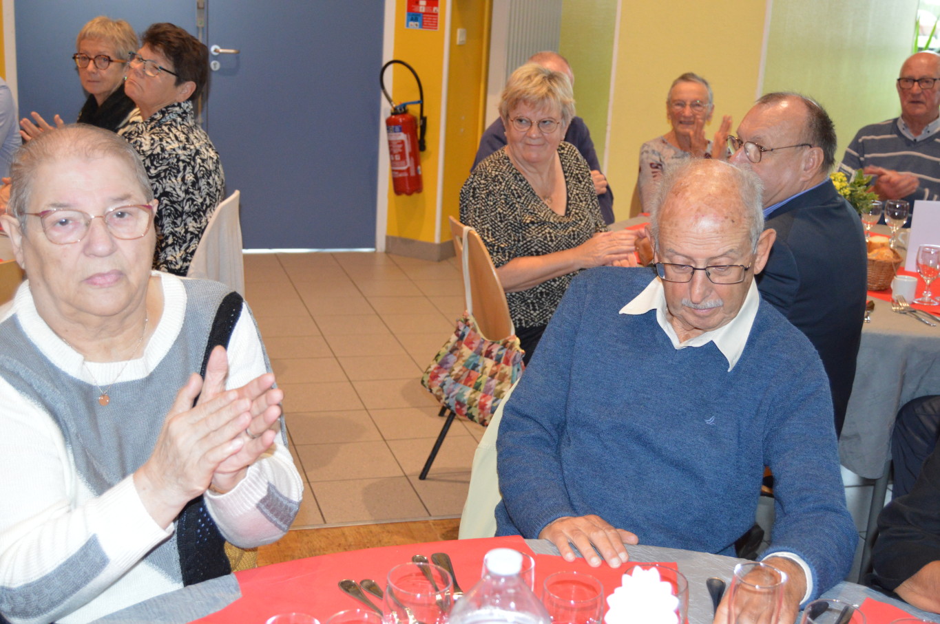 Avant le début du repas, Madame Suzanne Dupuis (88 ans) et Monsieur Maurice Bastard (95 ans), la doyenne et le doyen de la journée ont été mis à l’honneur. Après un délicieux repas préparé par l’équipe de Ledant Traiteur, nos invités de la journée ont pu assister à un magnifique spectacle avec des artistes de qualité. Ainsi, pendant près de 2 heures, ils ont pu regarder la comédie musicale “Souvenir, souvenir” proposée par la compagnie Trabucco et retrouver un grand nombre de tubes de la chanson française.