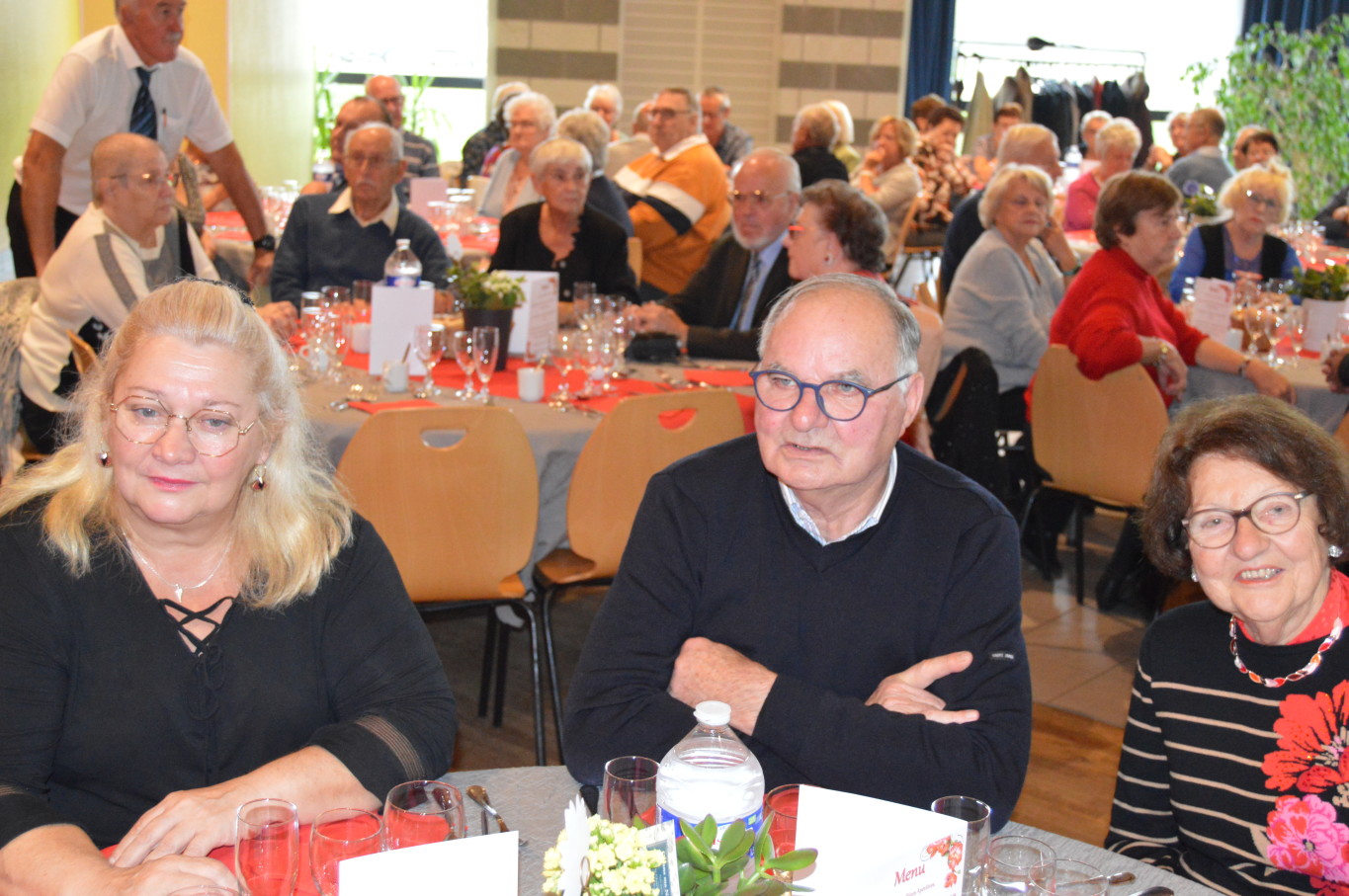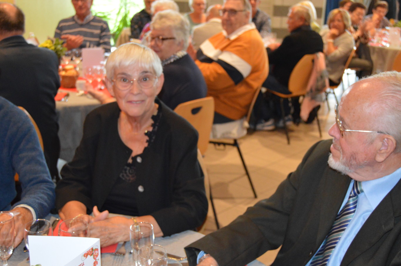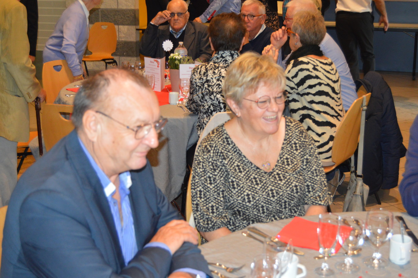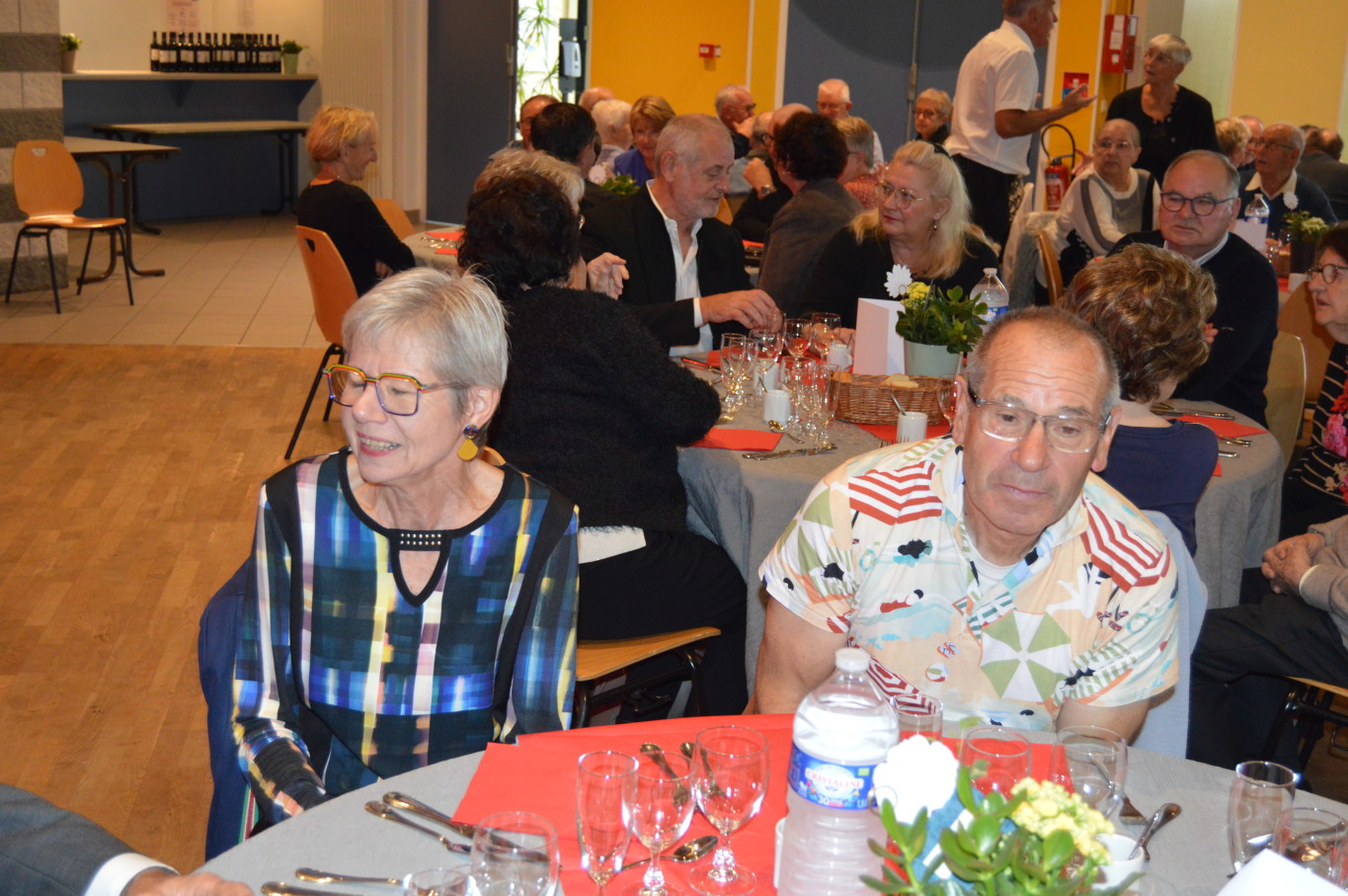 Avant le début du repas, Madame Suzanne Dupuis (88 ans) et Monsieur Maurice Bastard (95 ans), la doyenne et le doyen de la journée ont été mis à l’honneur. Après un délicieux repas préparé par l’équipe de Ledant Traiteur, nos invités de la journée ont pu assister à un magnifique spectacle avec des artistes de qualité. Ainsi, pendant près de 2 heures, ils ont pu regarder la comédie musicale “Souvenir, souvenir” proposée par la compagnie Trabucco et retrouver un grand nombre de tubes de la chanson française.