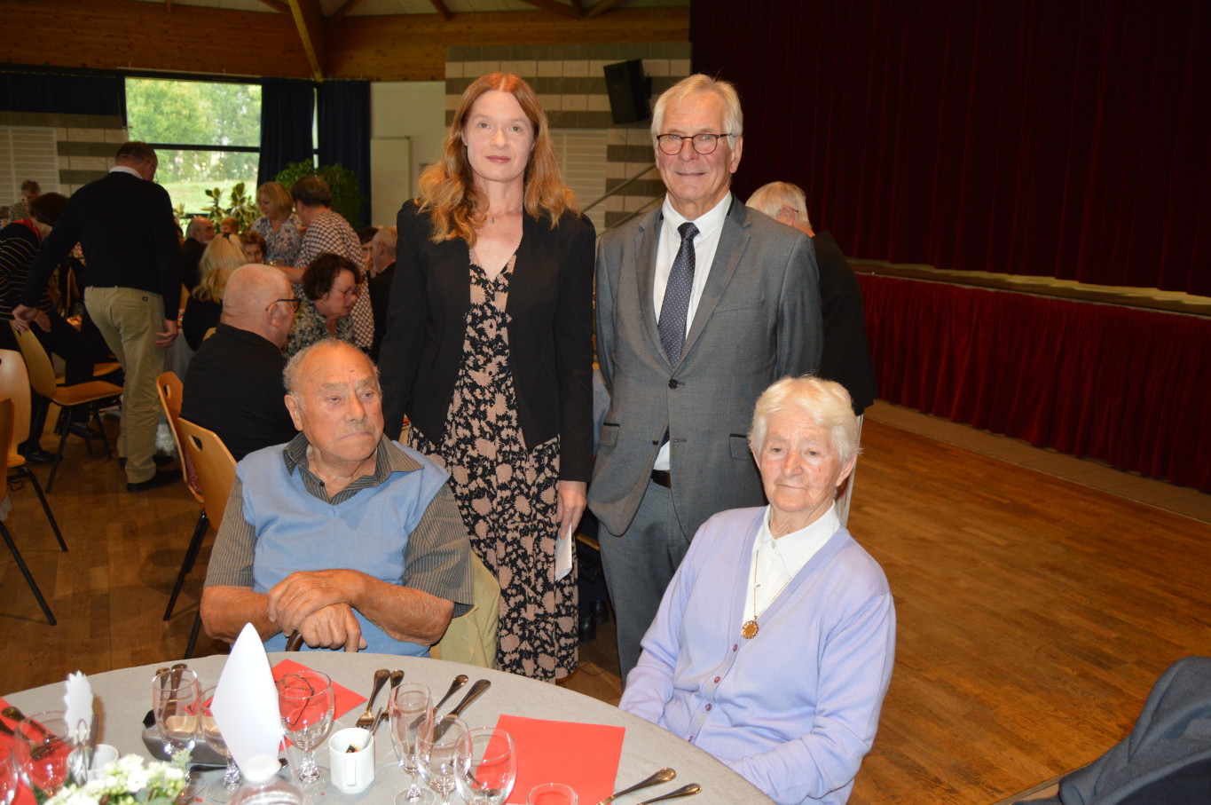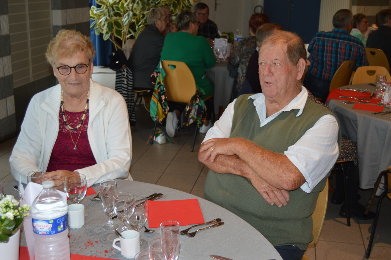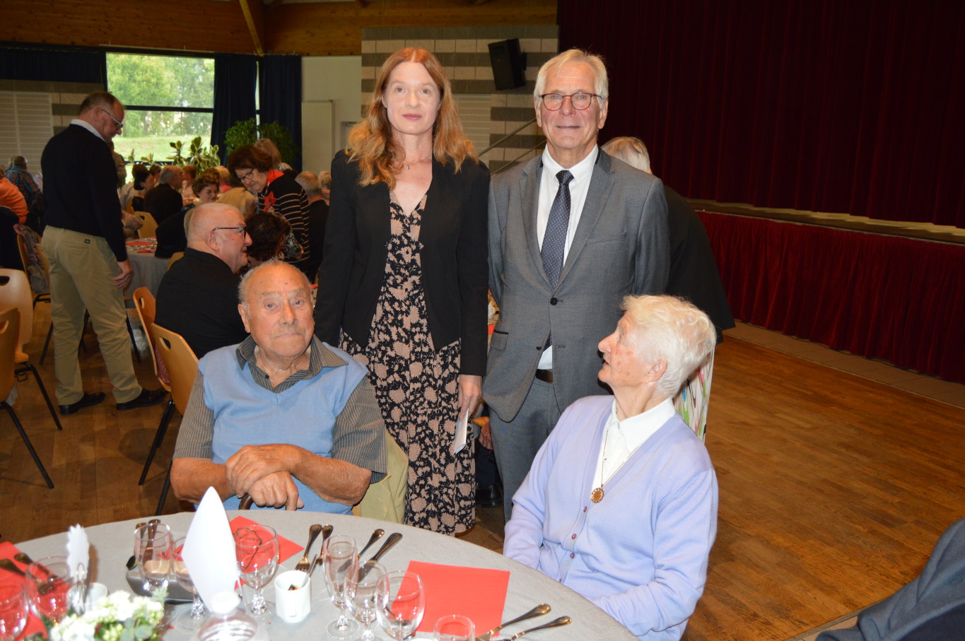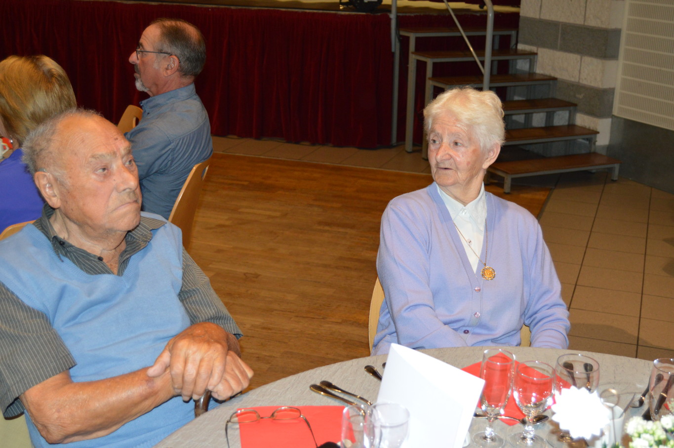 Avant le début du repas, Madame Suzanne Dupuis (88 ans) et Monsieur Maurice Bastard (95 ans), la doyenne et le doyen de la journée ont été mis à l’honneur. Après un délicieux repas préparé par l’équipe de Ledant Traiteur, nos invités de la journée ont pu assister à un magnifique spectacle avec des artistes de qualité. Ainsi, pendant près de 2 heures, ils ont pu regarder la comédie musicale “Souvenir, souvenir” proposée par la compagnie Trabucco et retrouver un grand nombre de tubes de la chanson française.