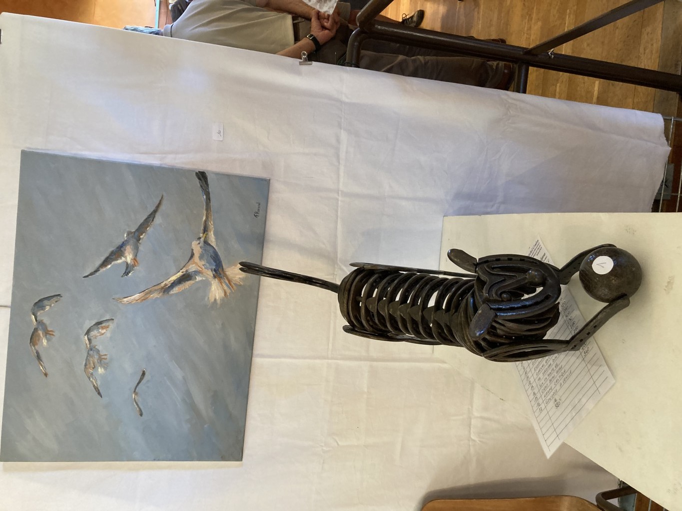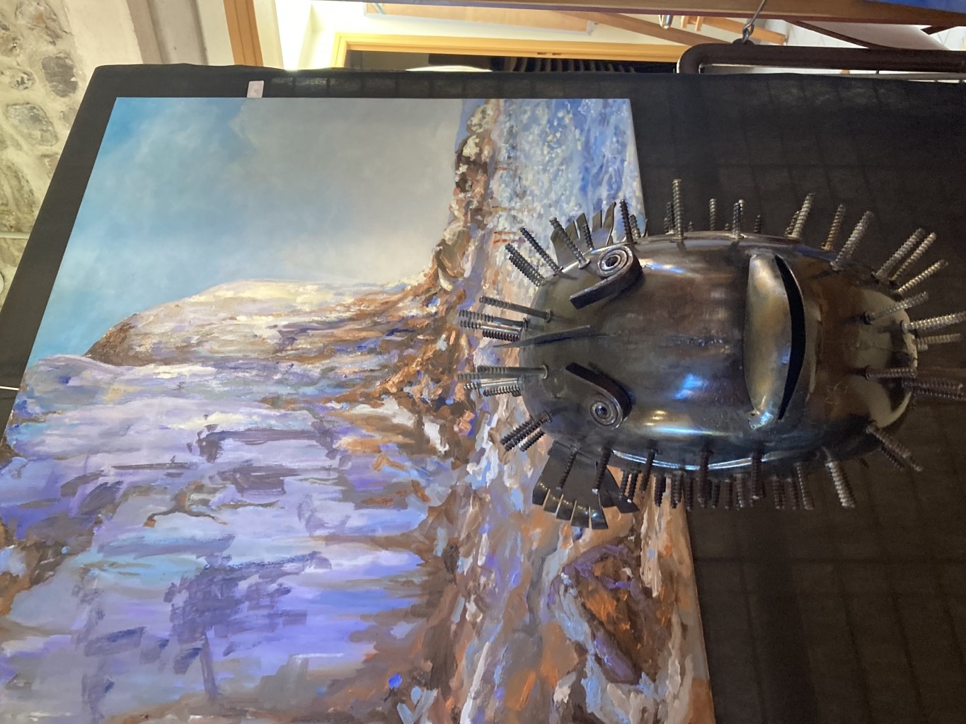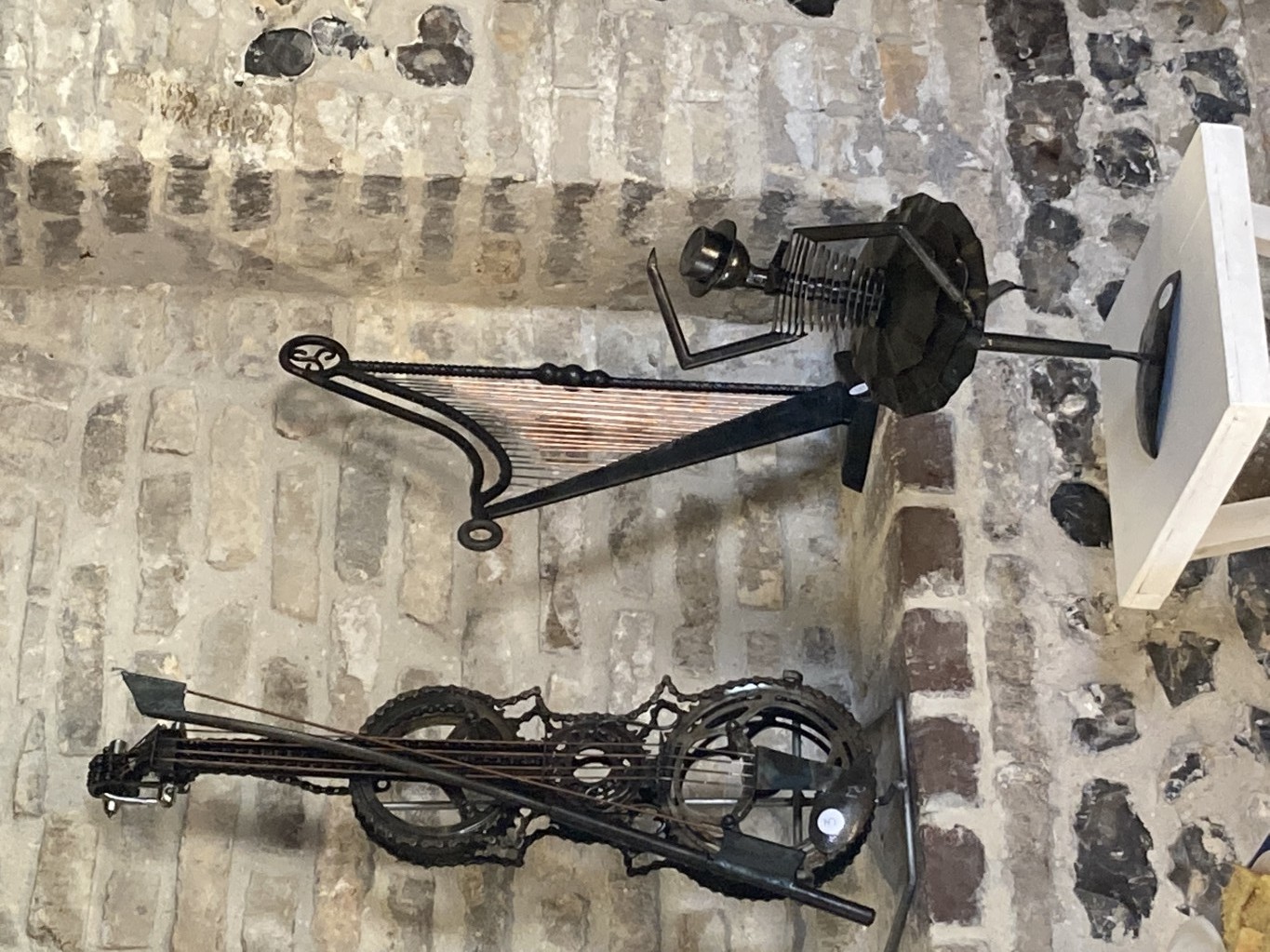 Michel Coulon recycle toute la ferraille qu’il peut trouver : des morceaux de métal abîmés, des outils, des fers à cheval, des chaînes de vélo… Tout, dans ses mains, se transforme en œuvre d’art.