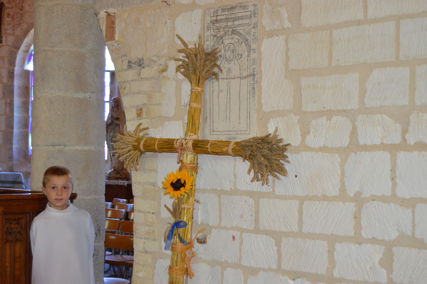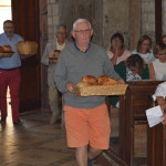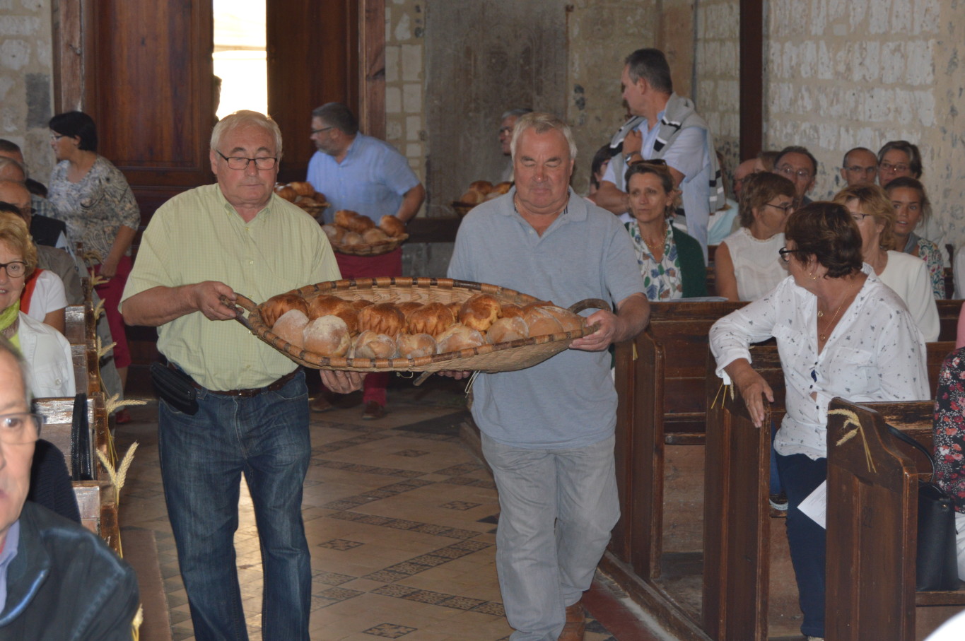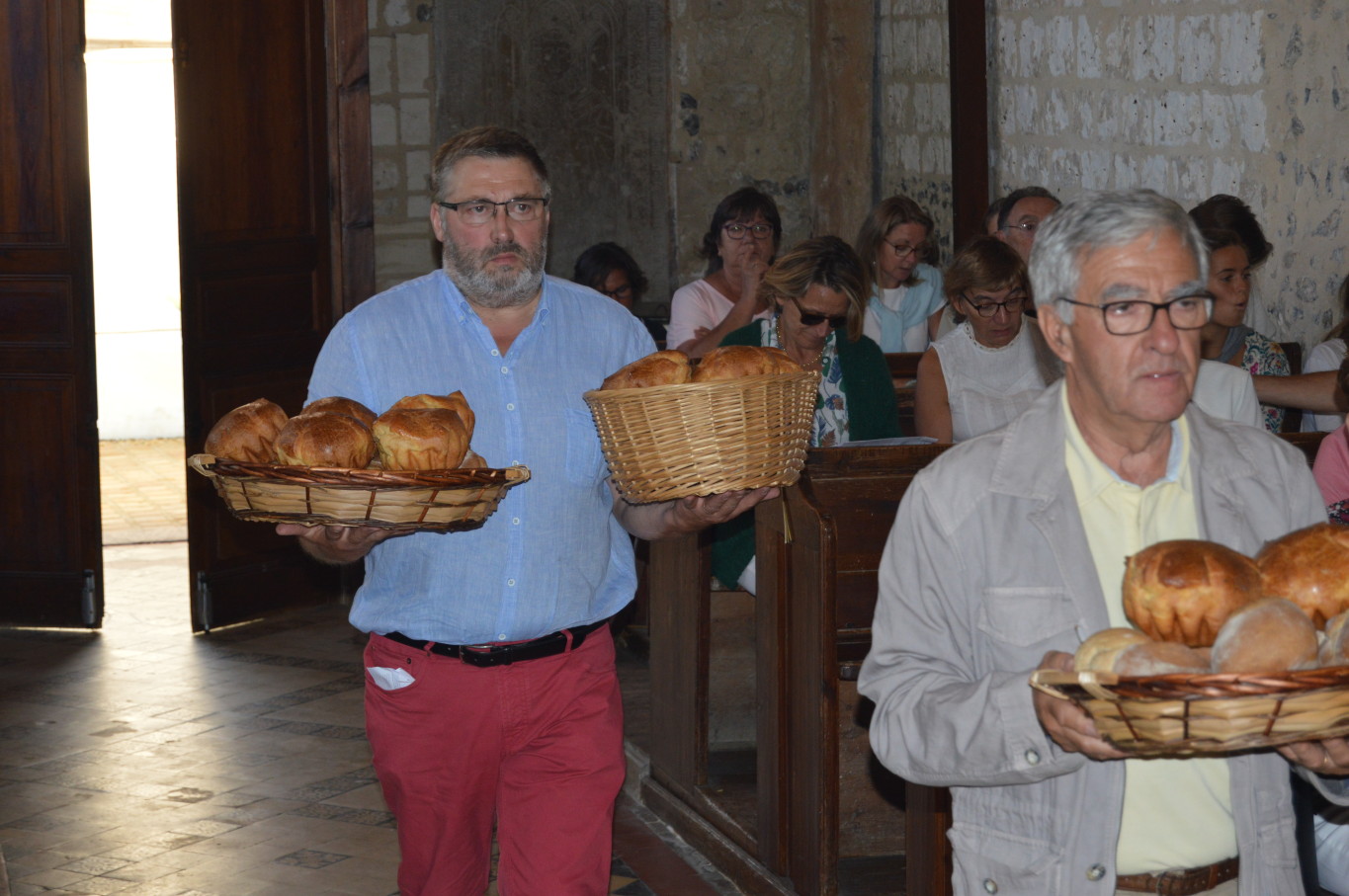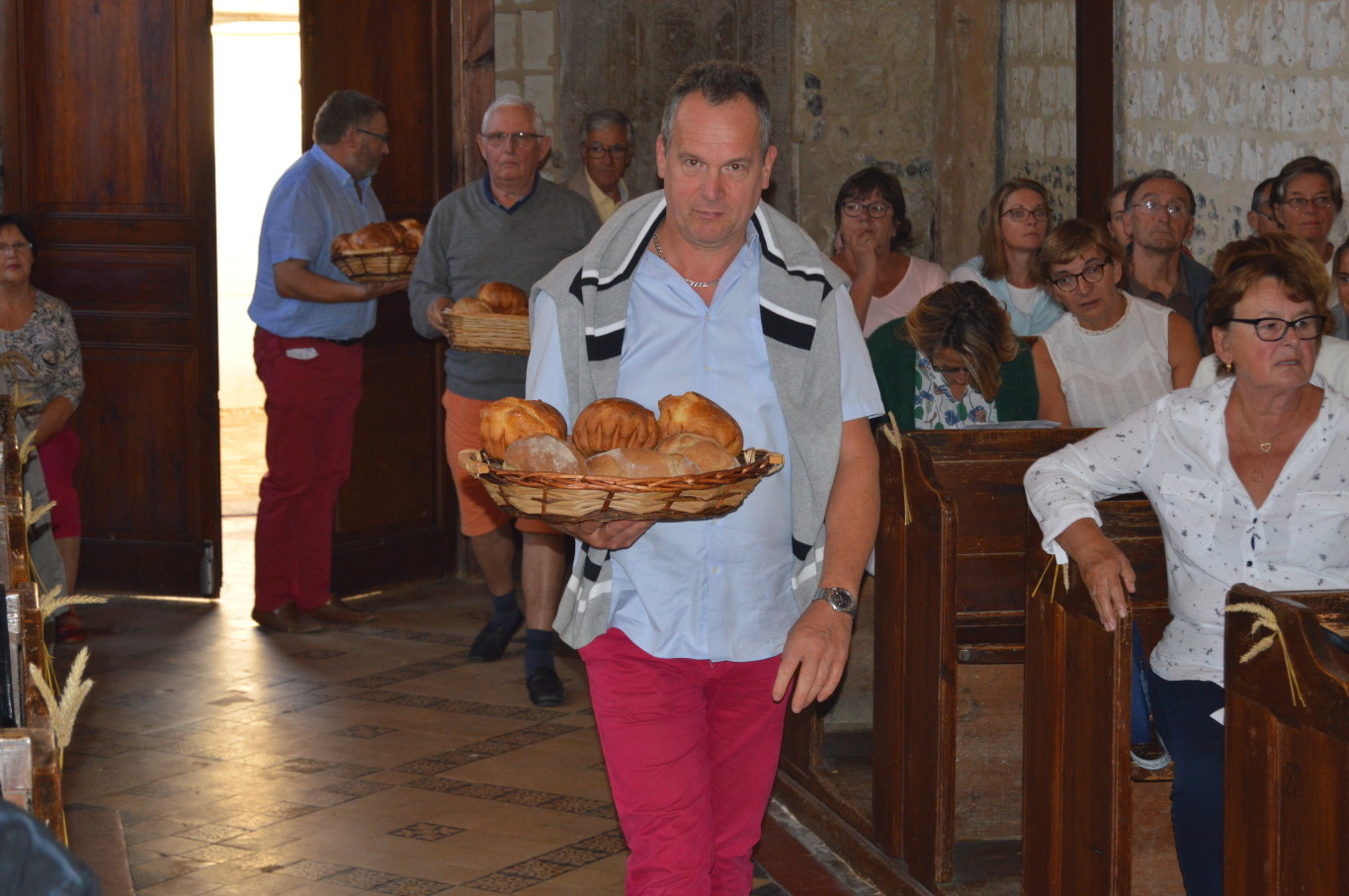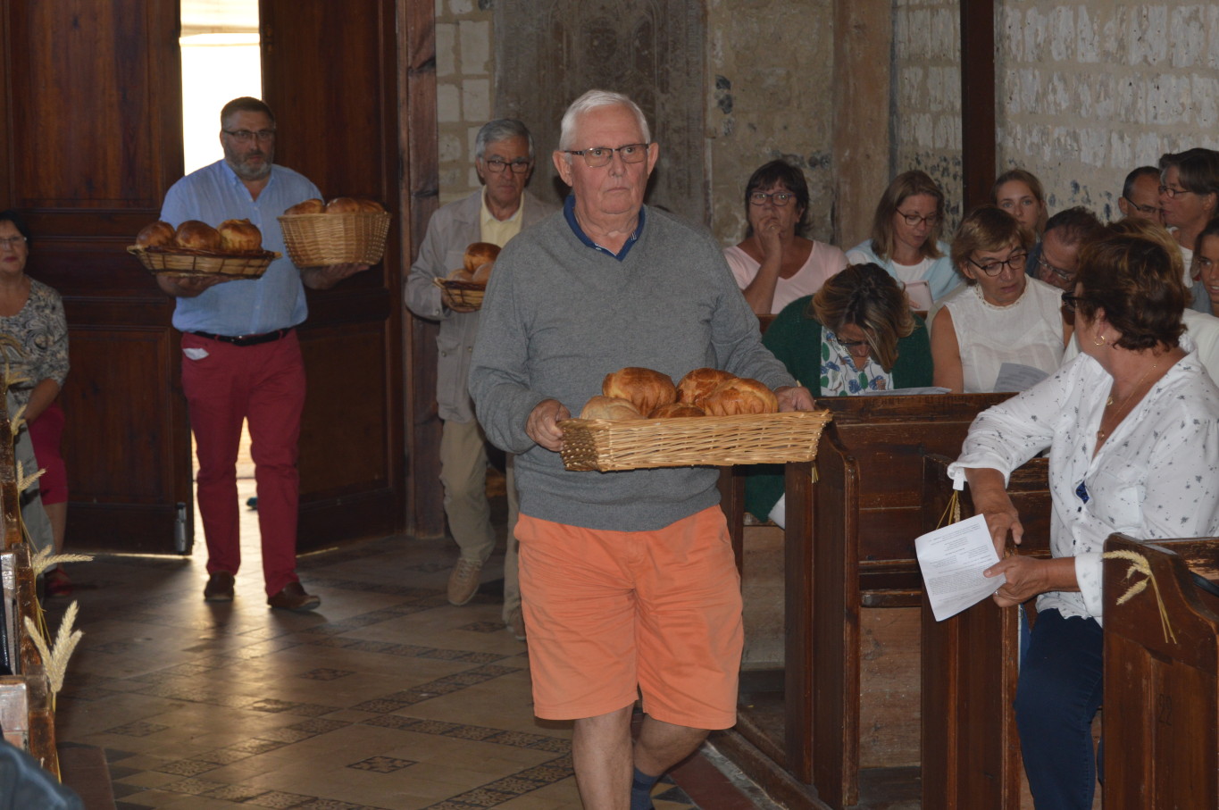 C’est dans une église magnifiquement décorée et mise en valeur que s’est déroulée la 3ème messe de la moisson qui a mis en avant le travail de tous ceux qui travaillent la terre et permettent ainsi de nous nourrir. Cette cérémonie a été célébrée par le père Geoffrey de la Tousche et le diacre Daniel Lesueur devant une nombreuse assistance. A la fin de la messe, un temps de partage et de fête a permis à ceux qui le souhaitaient de déguster du pain et de la brioche cuits au four à pain de la commune.