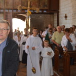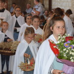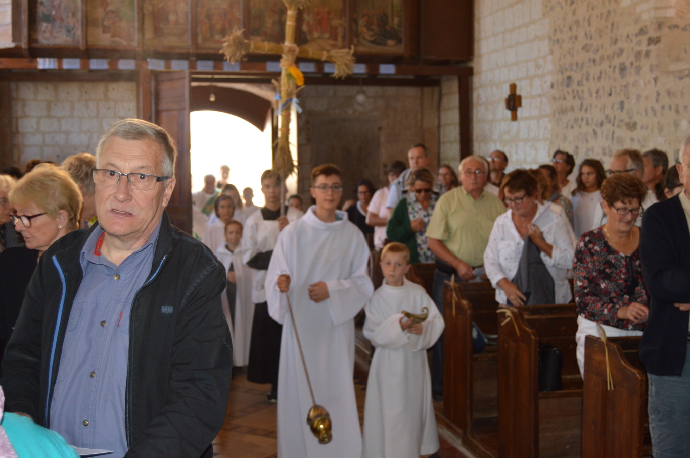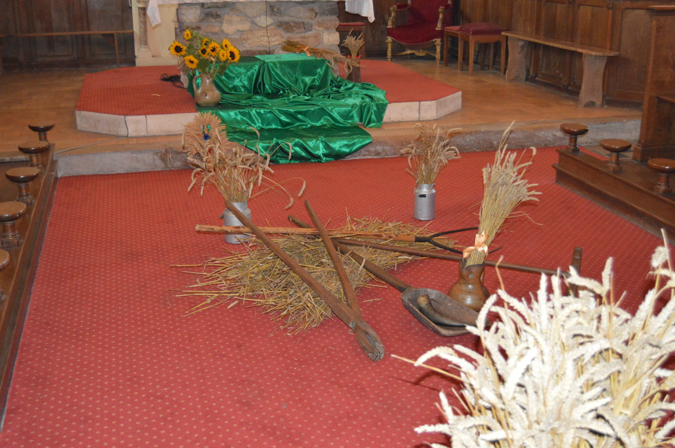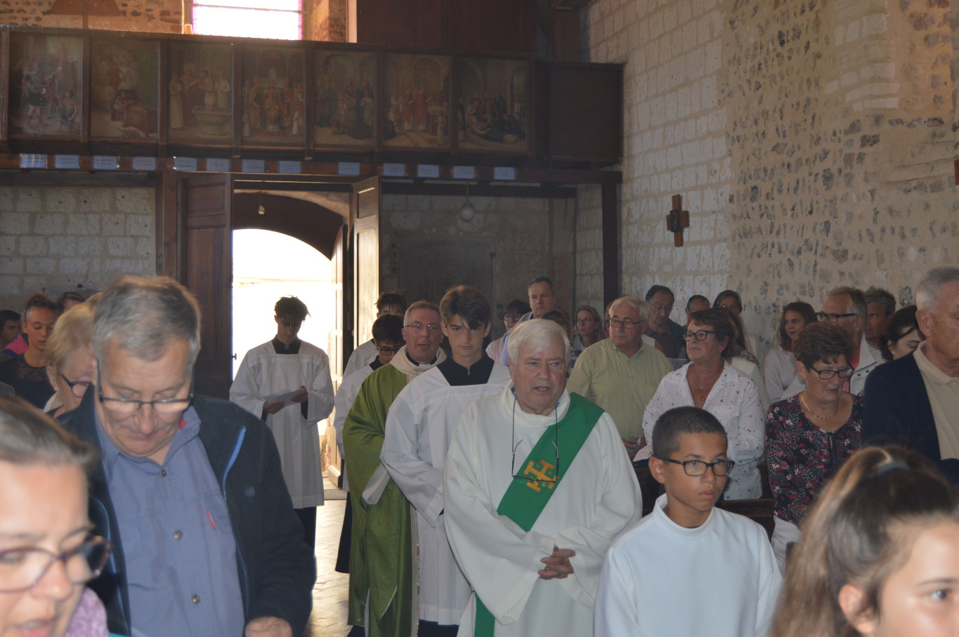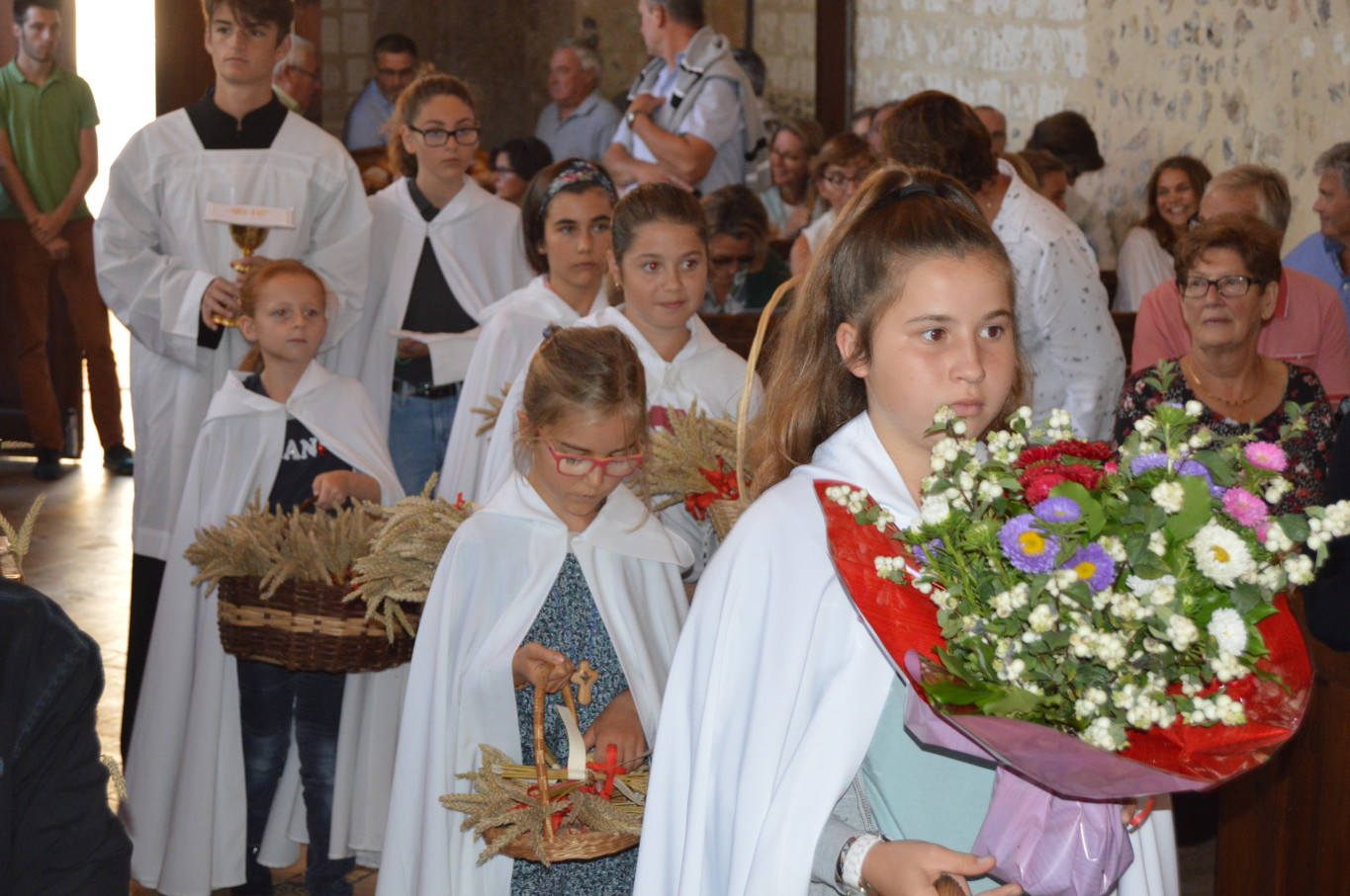 C’est dans une église magnifiquement décorée et mise en valeur que s’est déroulée la 3ème messe de la moisson qui a mis en avant le travail de tous ceux qui travaillent la terre et permettent ainsi de nous nourrir. Cette cérémonie a été célébrée par le père Geoffrey de la Tousche et le diacre Daniel Lesueur devant une nombreuse assistance. A la fin de la messe, un temps de partage et de fête a permis à ceux qui le souhaitaient de déguster du pain et de la brioche cuits au four à pain de la commune.