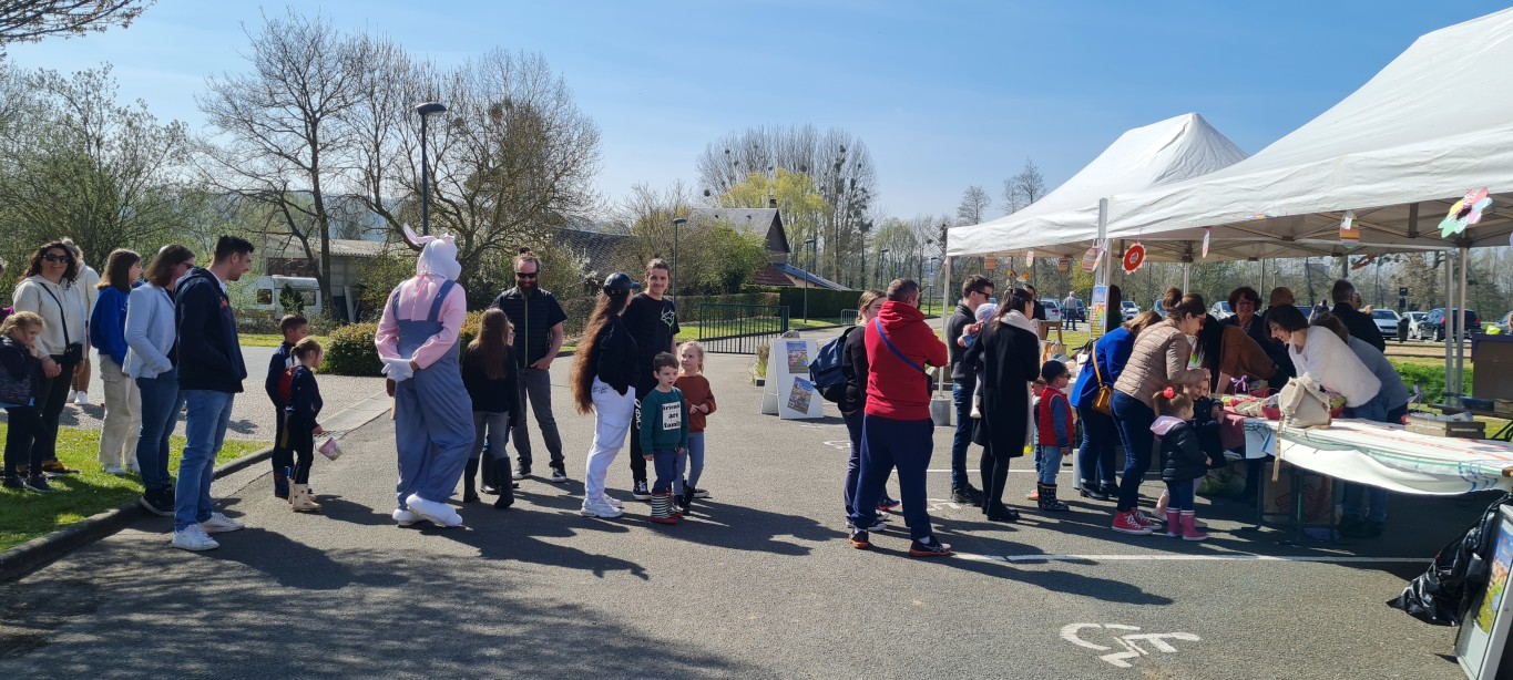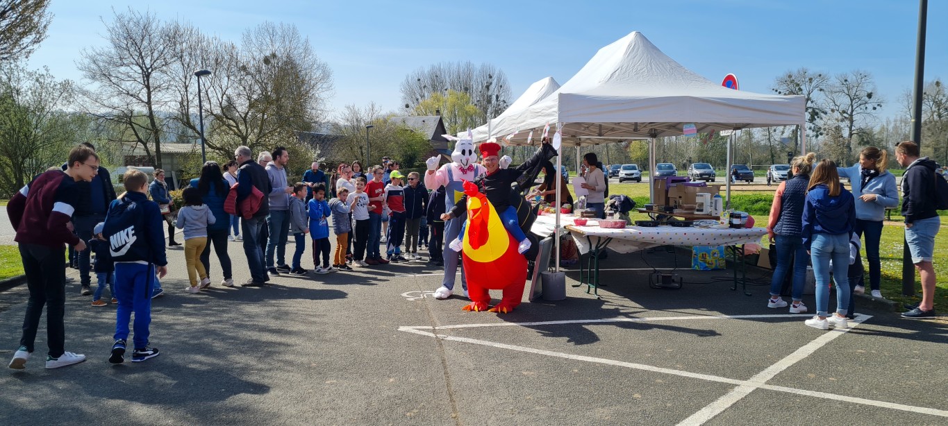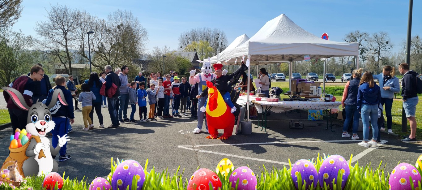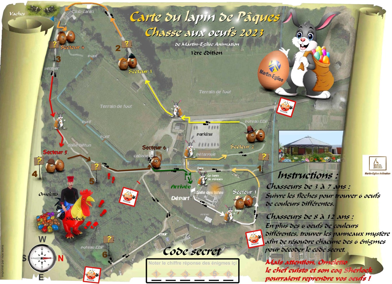 L’association Martin-Eglise Animation organisait sa première chasse aux œufs autour de la salle André Désaubry. Depuis le mois de janvier, Nicolas, Amandine et Caroline, les chevilles ouvrières de ce projet, ont travaillé dur pour mettre au point un parcours adapté aux plus petits qui devaient récupérer 6 œufs de couleurs différentes disséminés sur le parcours, et aussi pour les plus grands qui, en plus de récupérer les 6 œufs, devaient résoudre des énigmes. C’est sous un grand soleil que cette animation festive et gratuite s’est déroulée le dimanche 9 avril. Dans la matinée, le lapin de Pâques et ses assistants avaient caché les œufs tout au long du parcours. Dès 15 heures, les 85 enfants du groupe scolaire Gill Geryl qui avaient répondu à l’invitation se sont retrouvés à la salle des fêtes pour participer à cette chasse aux œufs. Ils sont partis avec leurs parents à la chasse aux œufs et ont pu rencontrer sur leur chemin le lapin de pâques et le chef Omeletto qui n’avait qu’une seule envie : récupérer les œufs trouvés par les enfants pour les utiliser dans sa cuisine. En fin de parcours, le lapin de Pâques et ses assistantes offraient à chacun des participants, après avoir récupéré les 6 œufs, des chocolats de Pâques. Lors de cet après-midi, les parents ont pu découvrir les créations de Pâques d’Aurélia.