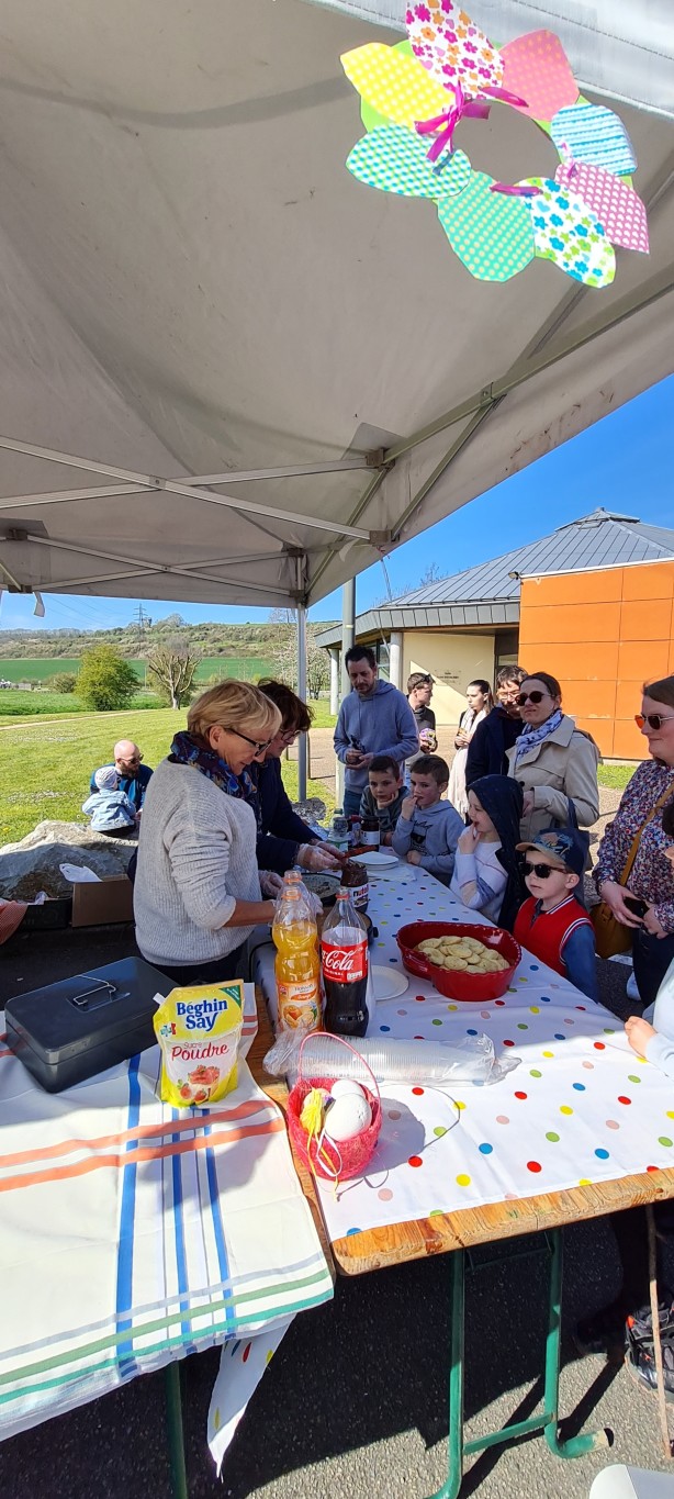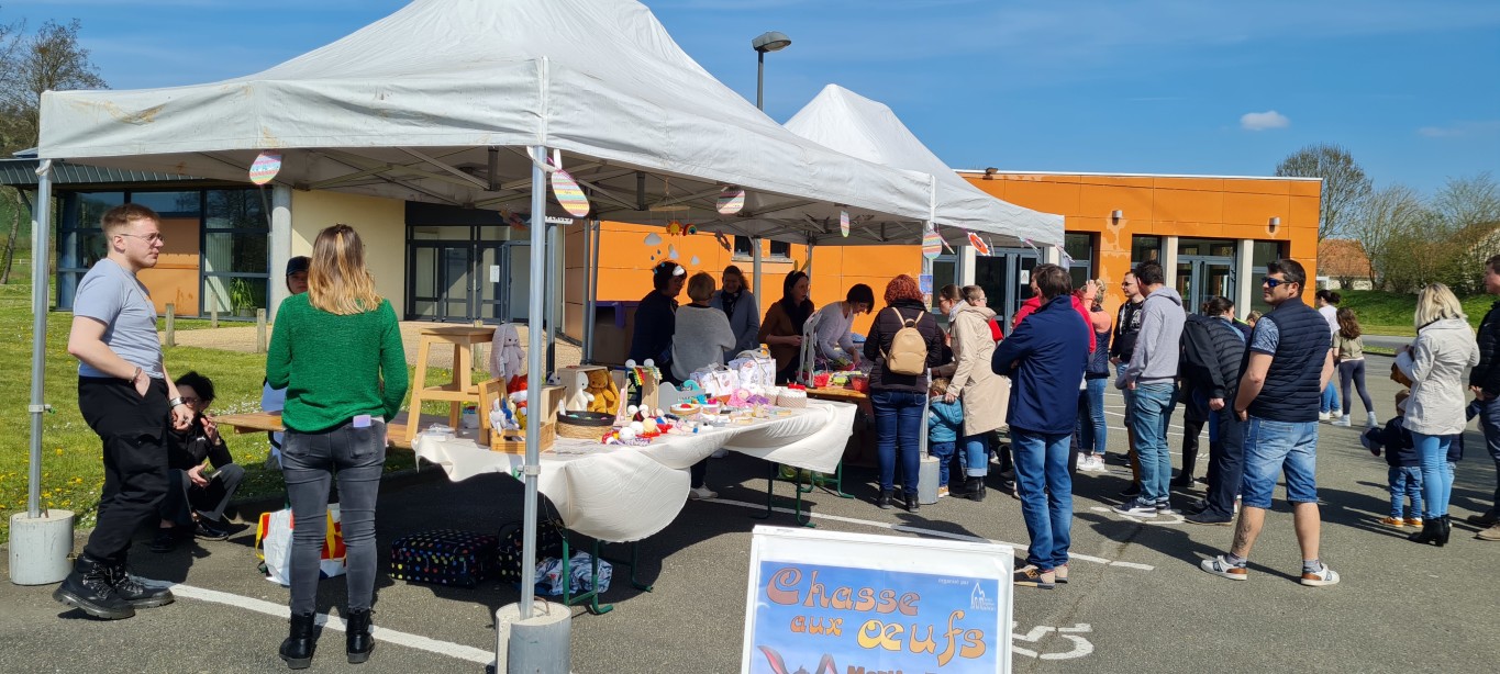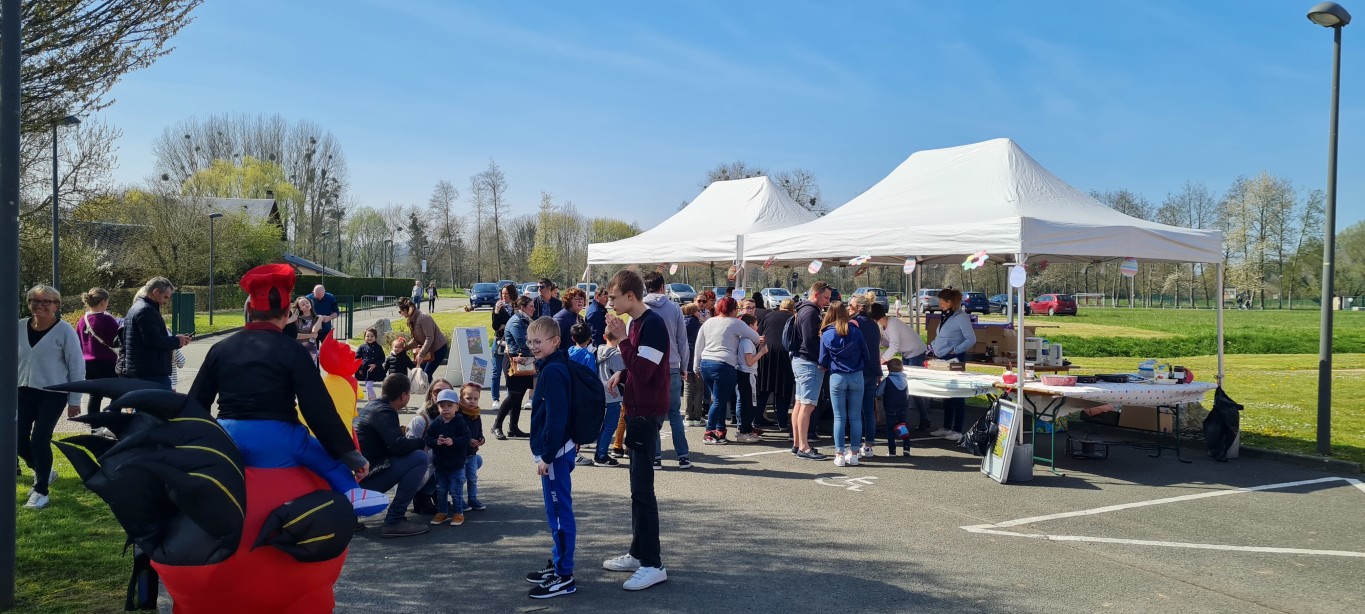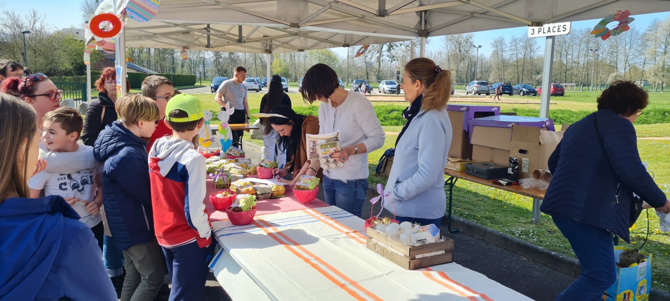 L’association Martin-Eglise Animation organisait sa première chasse aux œufs autour de la salle André Désaubry. Depuis le mois de janvier, Nicolas, Amandine et Caroline, les chevilles ouvrières de ce projet, ont travaillé dur pour mettre au point un parcours adapté aux plus petits qui devaient récupérer 6 œufs de couleurs différentes disséminés sur le parcours, et aussi pour les plus grands qui, en plus de récupérer les 6 œufs, devaient résoudre des énigmes. C’est sous un grand soleil que cette animation festive et gratuite s’est déroulée le dimanche 9 avril. Dans la matinée, le lapin de Pâques et ses assistants avaient caché les œufs tout au long du parcours. Dès 15 heures, les 85 enfants du groupe scolaire Gill Geryl qui avaient répondu à l’invitation se sont retrouvés à la salle des fêtes pour participer à cette chasse aux œufs. Ils sont partis avec leurs parents à la chasse aux œufs et ont pu rencontrer sur leur chemin le lapin de pâques et le chef Omeletto qui n’avait qu’une seule envie : récupérer les œufs trouvés par les enfants pour les utiliser dans sa cuisine. En fin de parcours, le lapin de Pâques et ses assistantes offraient à chacun des participants, après avoir récupéré les 6 œufs, des chocolats de Pâques. Lors de cet après-midi, les parents ont pu découvrir les créations de Pâques d’Aurélia.