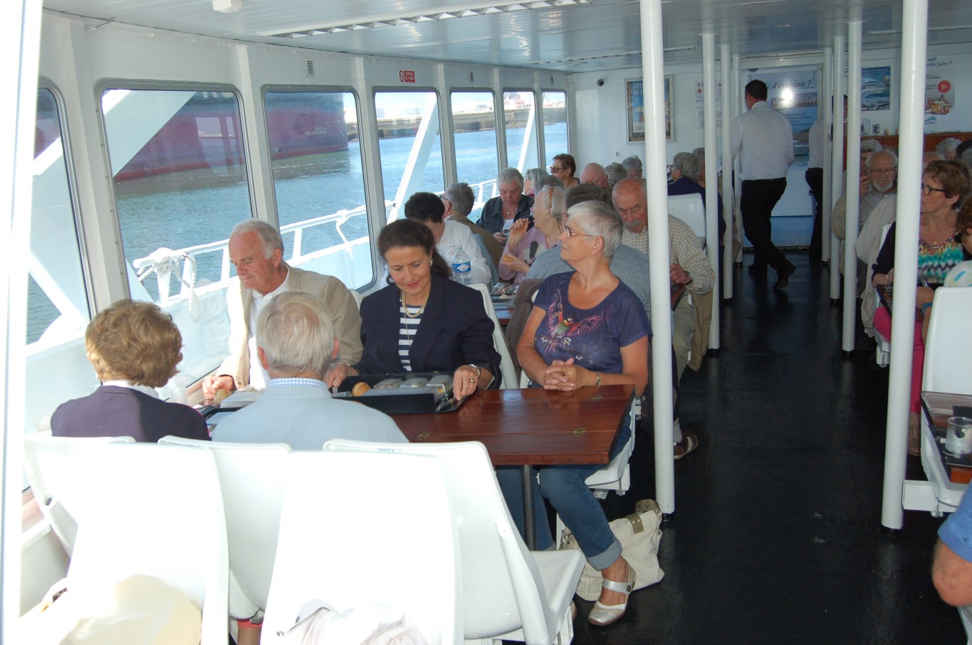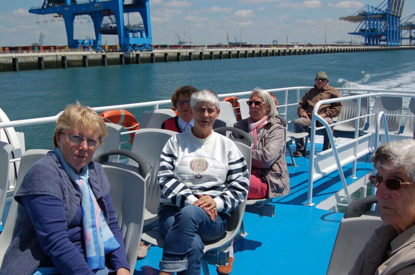 Nous avons visité la ville commentée par une guide , avec un arrêt à l’église St Joseph remarquable avec sa tour clocher de 170 m de hauteur. A 12 h, nous avons rejoint le bateau ” Ville du Havre ” pour un déjeuner et promenade à Port 2000 où nous avons assisté aux déchargements et chargements des conteneurs .